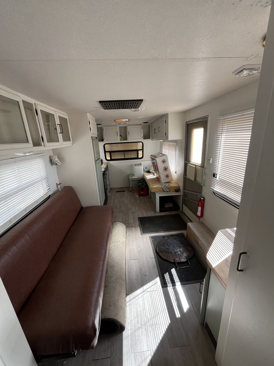 I have put a bunch of time and money into this trailer. I completely gutted and redid the interior. Unfortunately it needs a new roof and awning. I put new tires on it 3 years ago. They are still in great shape. No scams!