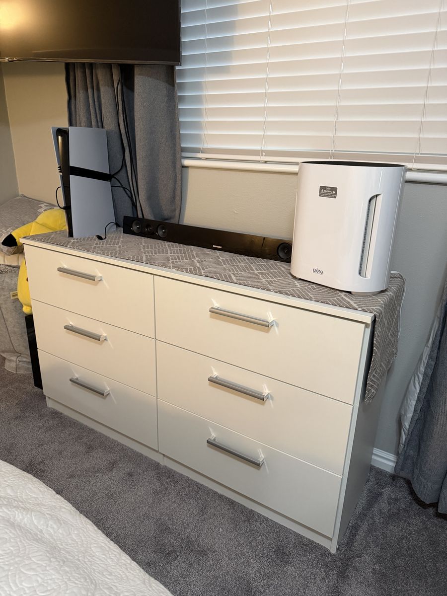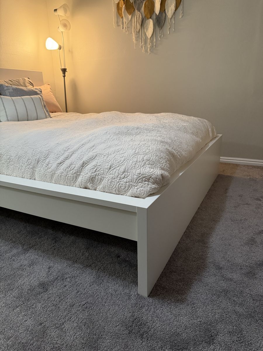 ApplePayWhite QUEEN size bed frame, ONE nightstand, and 6 drawer dresser. Mattress NOT included. Asking $300 for the full set or if sold separately $150 for the bed frame and $150 for the dresser and nightstand (dresser and nightstand would go together.) Message 801-793-4793 if you are interested or have any questions.