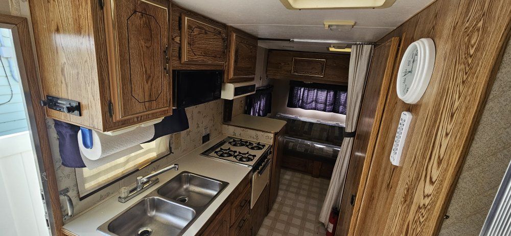 1991 Monterey 20FT Camp trailer. new battery, inside is in good condition, outside has some dents from a hail storm. has one full size bed (couch) the table converts to a bed and there are two bunks for smaller people. everything works water heater, radiant heater, water pump all interior lights are LED. Large roll out canopy. Equalizer hitch included.