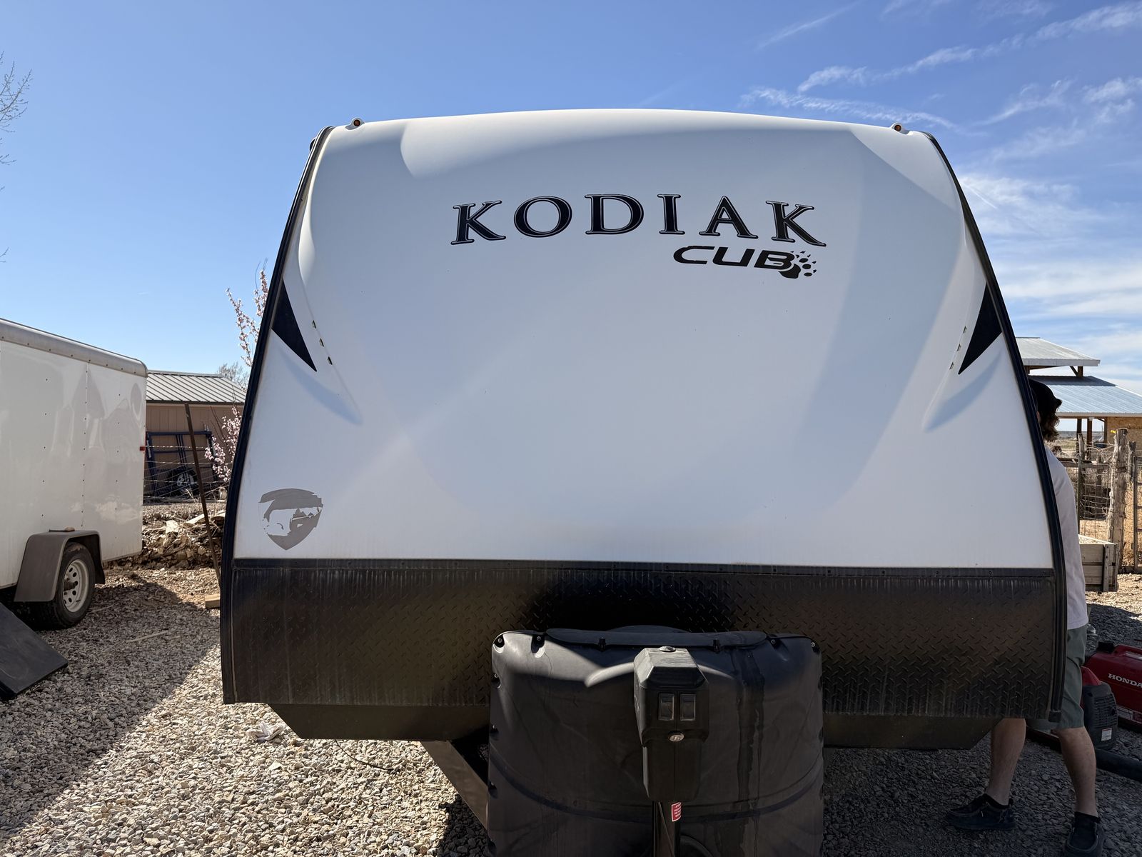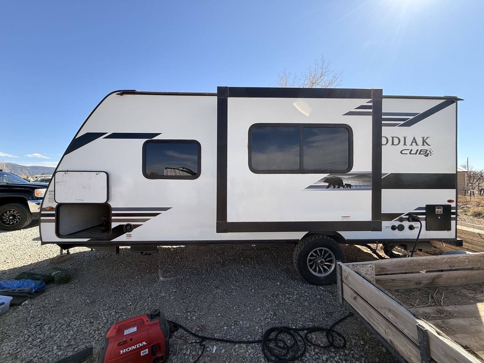 2021 Kodiak Cub 185MB travel trailer in good condition, lightweight and easy to tow. Features a comfortable queen bed, futon couch, kitchen, and bathroom with shower. Comes with a griddle that attaches right outside for a simple outdoor kitchen. Perfect for weekend trips or extended camping. Clean, well-maintained, and ready for an adventure. $14,000 OBO.