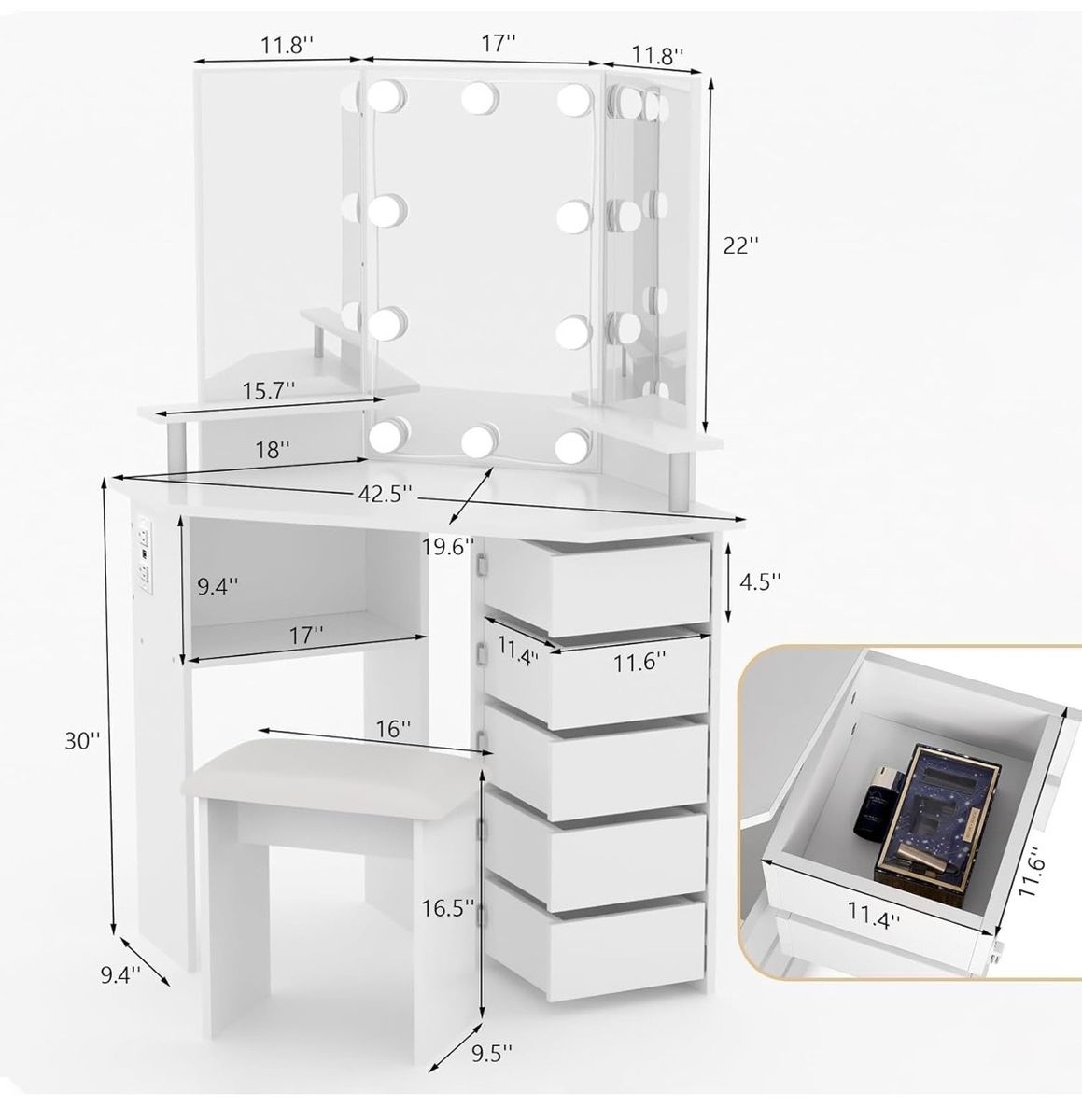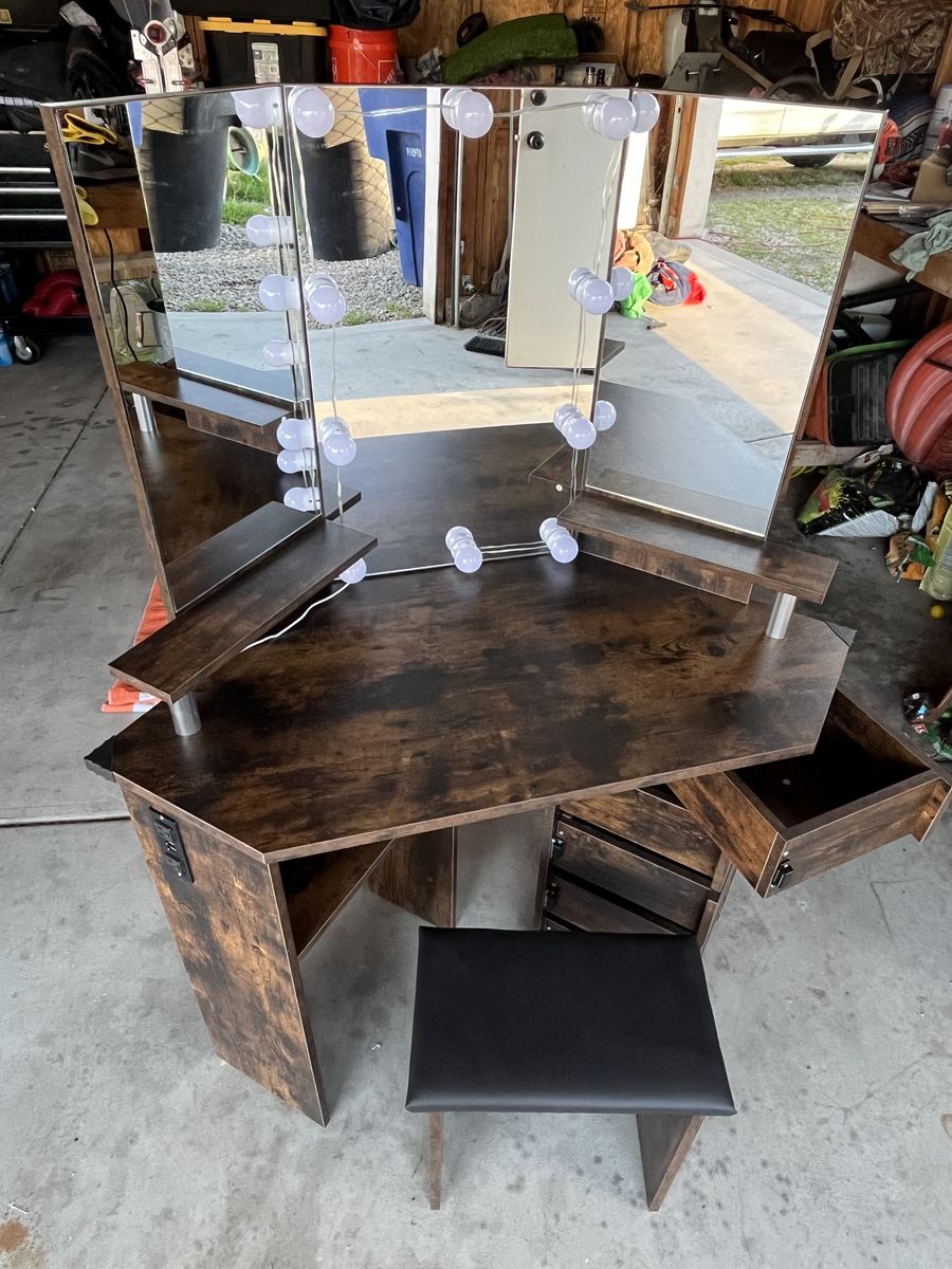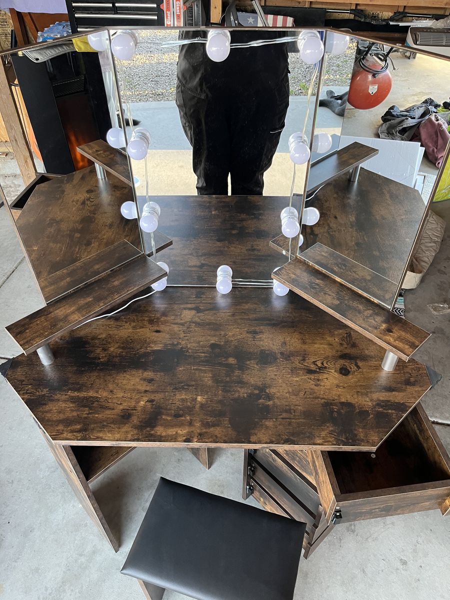 VenmoNew and assembled lighted vanity with 5 swinging drawers.