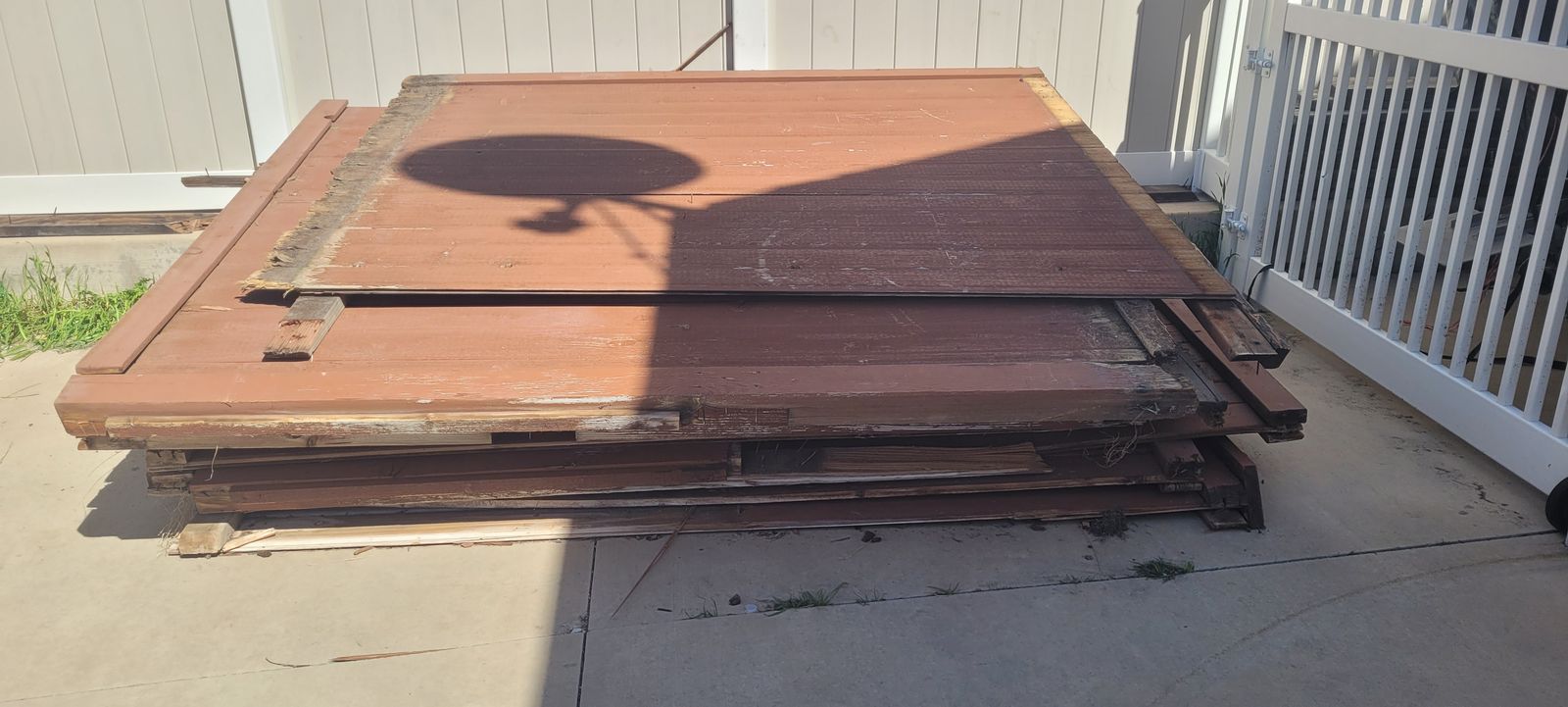 Free wood from an old deck and deck walls. Repurpose? Firewood?