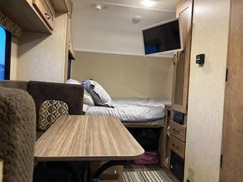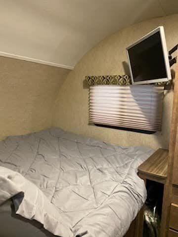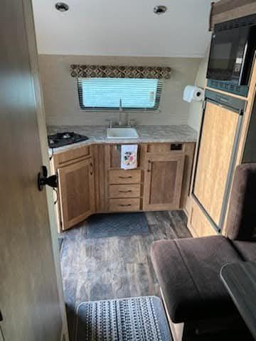 Our family loved this 2017 Starcraft Satellite 18DS, but we've outgrown it and are ready for a bigger rig. Perfect for a small family or new campers, this compact trailer is easy to tow (3,000 lbs, 20ft) and surprisingly spacious with a dinette slide-out. Well-equipped with a wet bath, large fridge, stove, microwave, AC, furnace, and entertainment system. Setup is a breeze with an electric tongue jack and electric awning. Go off-grid with a large fresh water tank and ample storage.