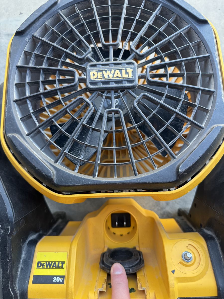 ApplePayUses the 20v platform, can also use 60v batteries. This model allows you to plug in an extension cord to power. Missing the fan does knob, but unit still works.