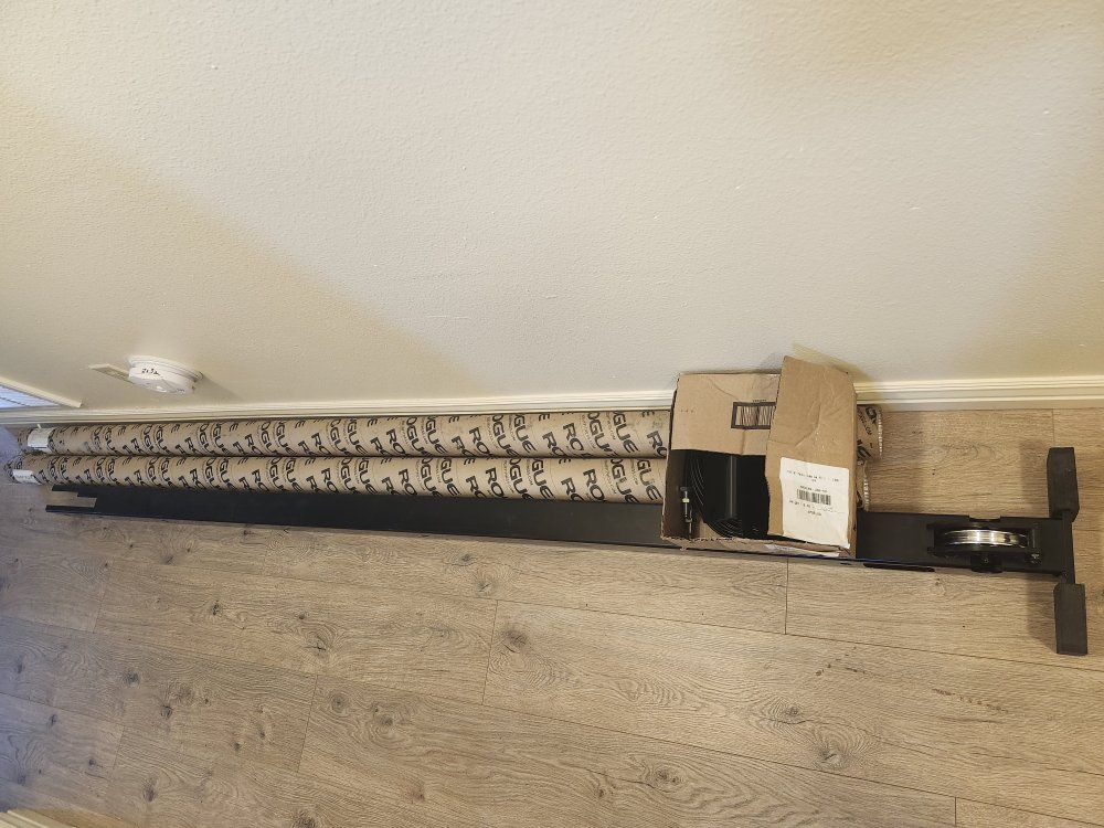 Venmo$100 OBO. Comes with 2 guide rods, 2 cables, main post with pulleys, and adapter plate. Compatible with any Rogue Fitness 100" Monster Rack. Retails for $184.