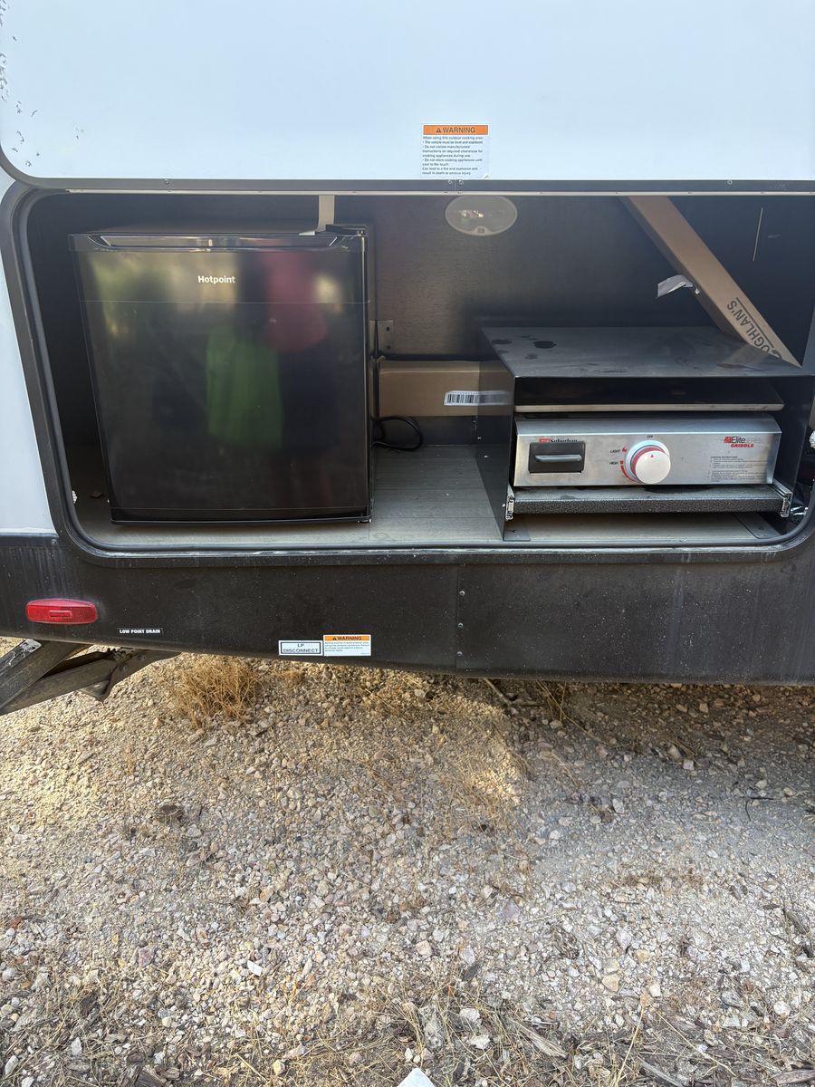 This is a beautiful spacious bunk house with a pull-down queen bed. It’s got 1 slide out and u shaped table. It’s got an outdoor kitchen and fully light awning. It’s only been used 5 times. It’s got a lot of storage. It’s light weight and easy to tow. You could have tons of fun for many summers to come!!