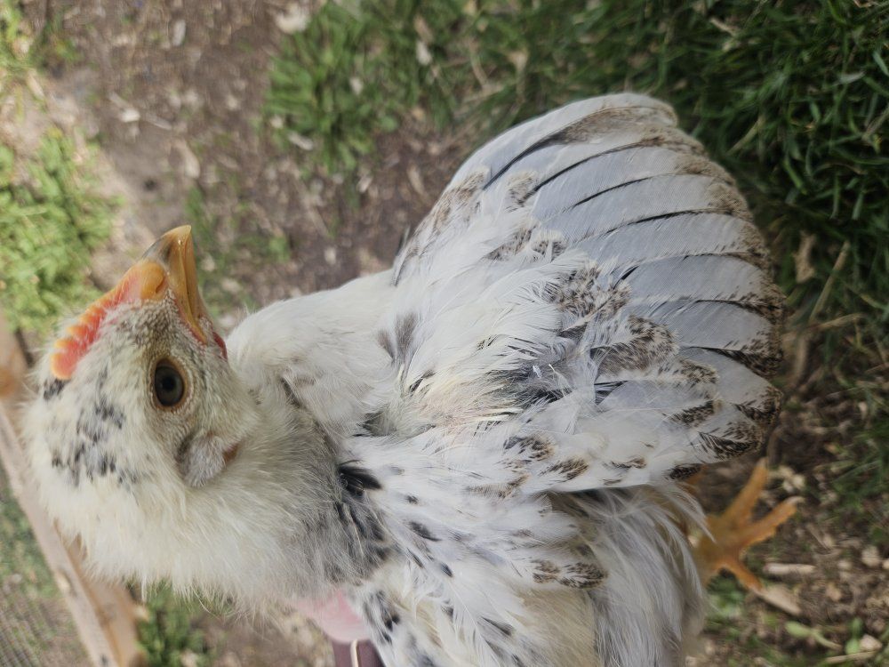 3 unique little guys ready for a new home. No crowing yet, but likely male based on combs. 1 naked neck with bow tie/ clean legs (hatched from brown egg)