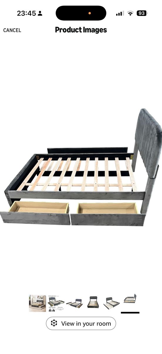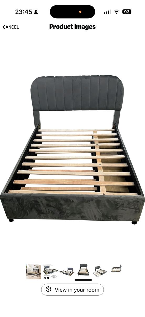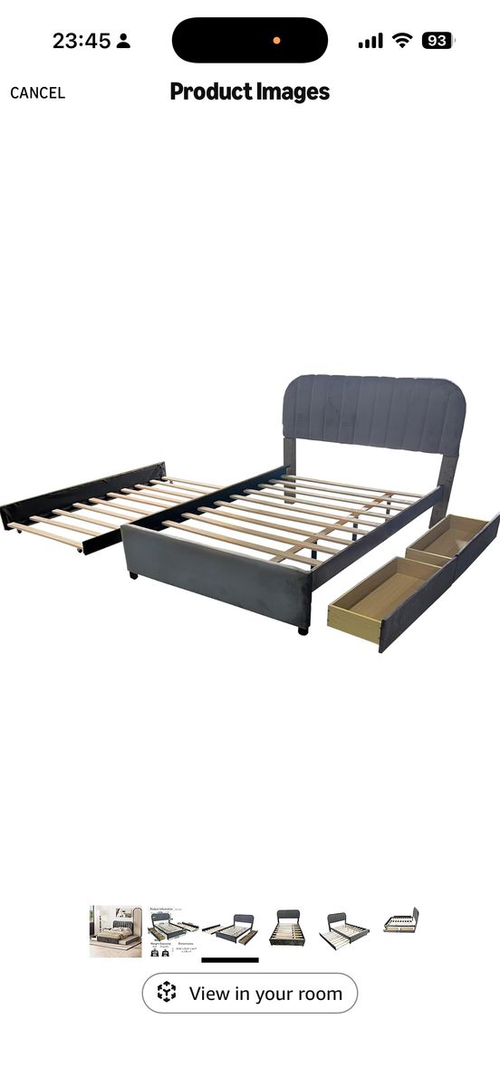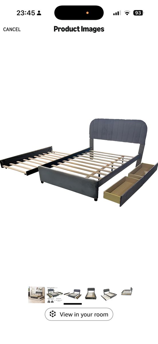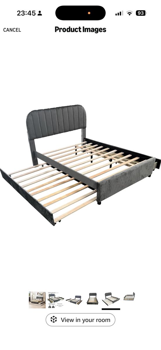ApplePayNew, hardly used trundle bed. Full size bed frame with a twin size trundle frame (mattresses are not included). Material is gray velvet.