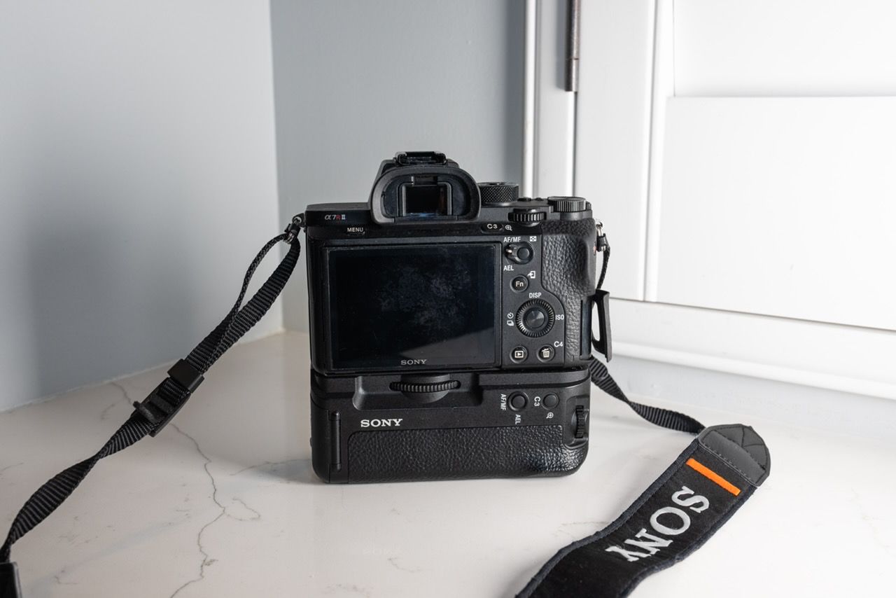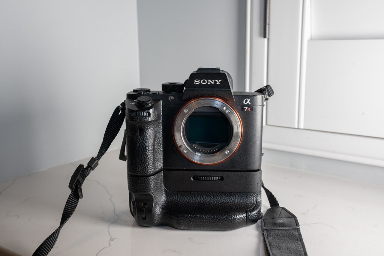 VenmoSony A7R II - 42.4MP Full-Frame Sensor, 4K Video, Fast Hybrid Autofocus, 5-Axis Image Stabilization, along with 3 batteries and a sony battery charger and llano battery charger.