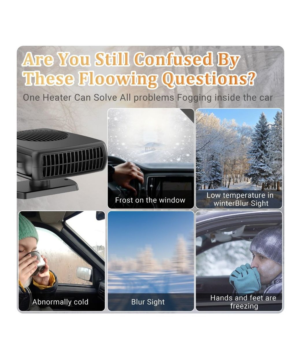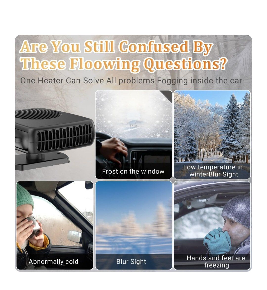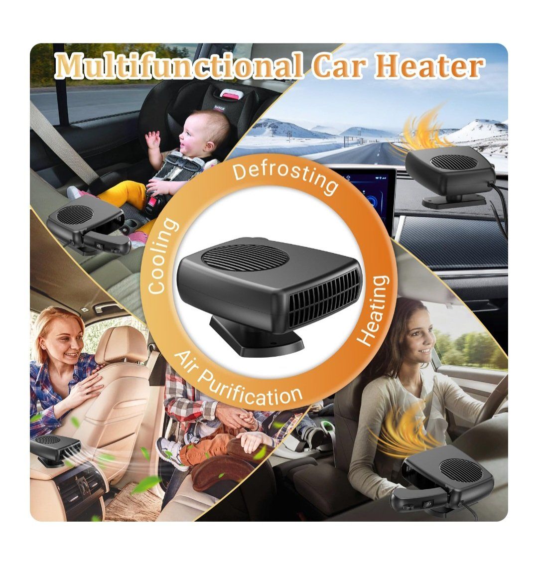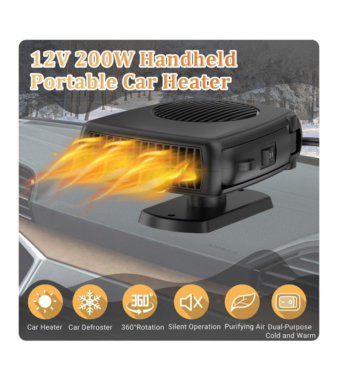 ZelleCar Heater 12V 200W - Portable Auto Vehicle Heater Defroster Windshield Defogger Automobile Windscreen Heaters for Cars with Fast Heating & Cooling Fan Window Defroster with Cigarette Lighter Plug