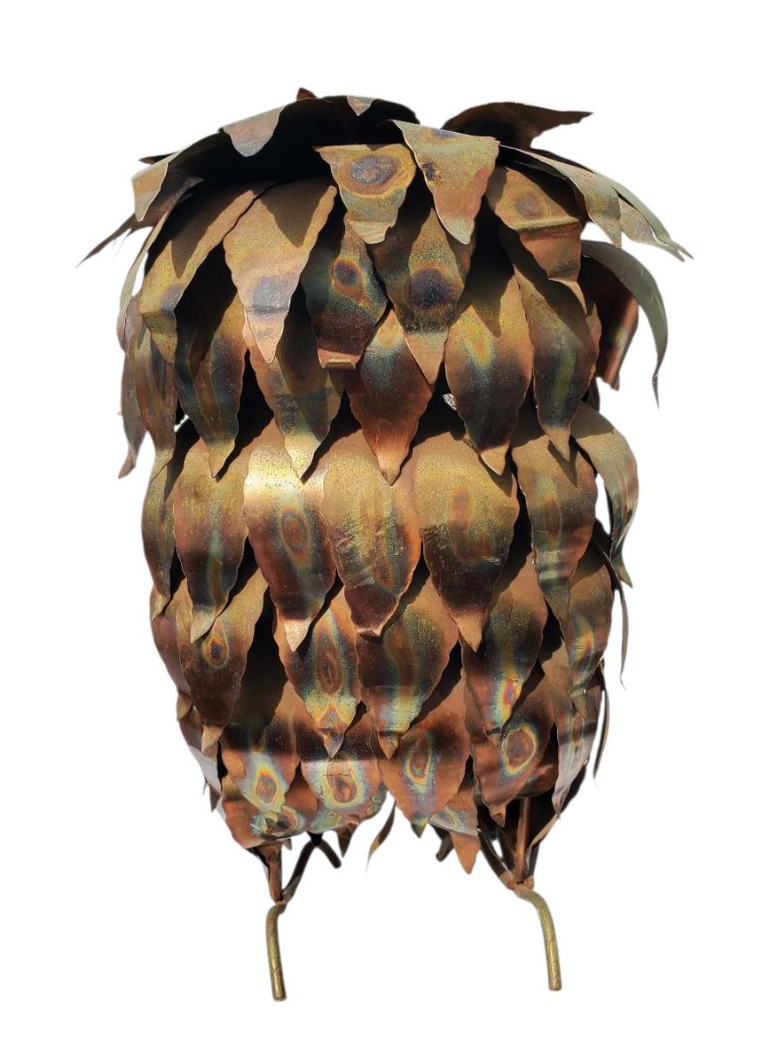 Curtis Jere style | Brass or Copper? | torch cut layered body | nice patina | missing talon | MCM decor | 1960's | bird | amber-tone eyes
