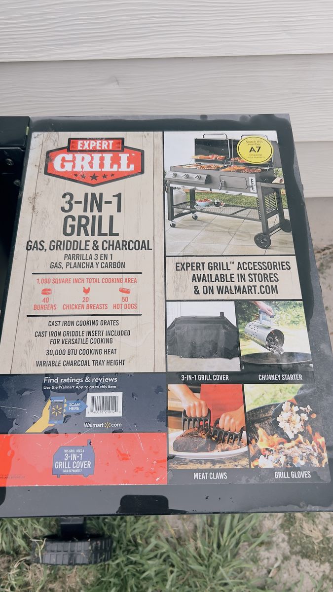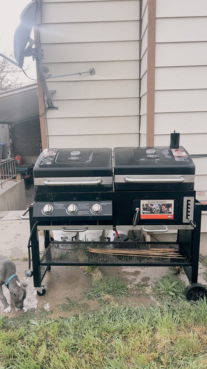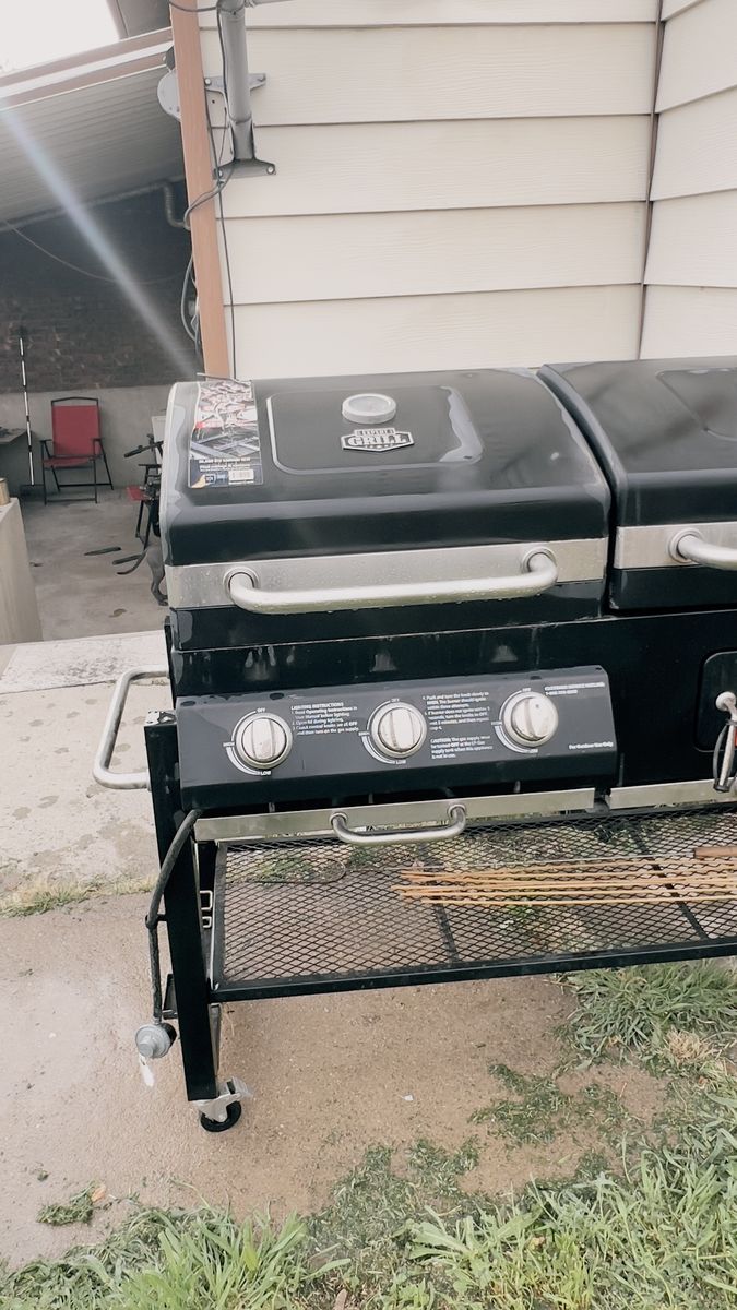 Venmo3 in 1 grill does not include propane tank. It has a propane burner side, a charcoal side and a griddle. I’ve only used the propane burner side anyways gently use it still I’m really great shape has lots of life left.