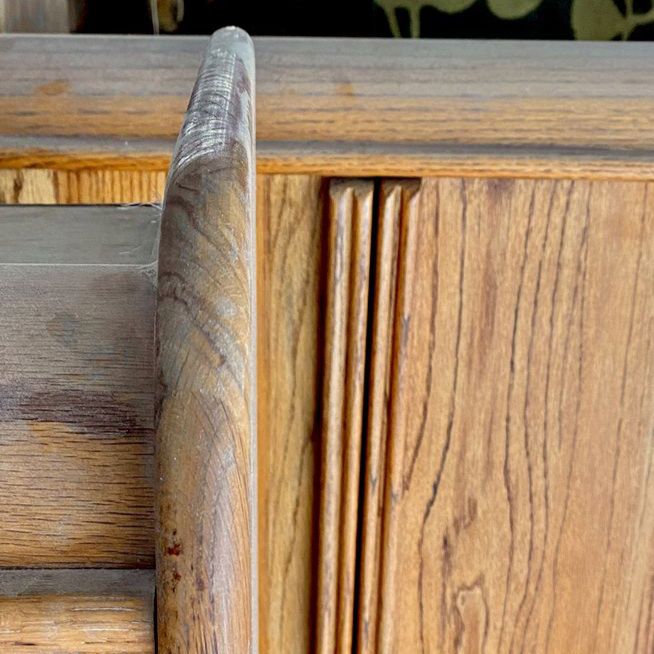 I know this ad is a long shot. Minus the plywood back, these quintessential 80s pieces are constructed of solid oak. Not solid "wood," solid oak. All flat boards are 3/4 thick. See side profile pic. Not a drop of veneer anywhere. Just above the drawers there's a pullout platform. Someone paid Boyd Furniture Company a LOT of money to make this custom pair of wardrobes. They are beautifully constructed. In the 80s, companies willing to build with solid oak were rare. At scale, no one. I don't know if this style is sought after and haven't even tried to think of a price. I design/build furniture and, as much as it pains me, if no one is seriously interested I'm going to harvest them for the old growth oak. Unmilled, that amount of oak is worth multiples of hundreds. I've got a mission style base from an antique oak tallboy. All it needs is a top. Harvesting just one of the wardrobe sides, allows me to convert it into a very cool 2 drawer coffee table or chest.