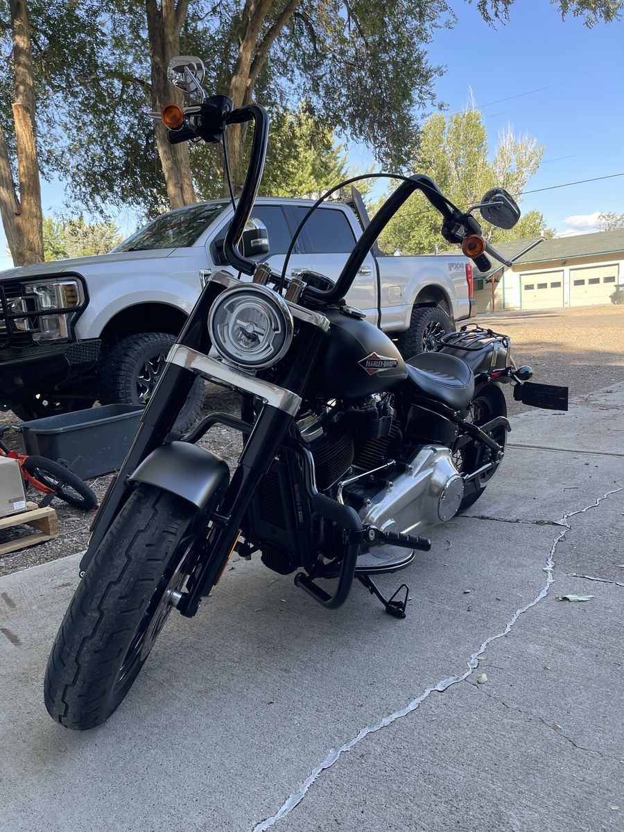 ApplePay21’ Softtail Slim Harley, stage one upgrades complete, street sweepers, engine guard, highway pegs, 16” inch ape hangers. Runs great, just not the right time in my life for it!