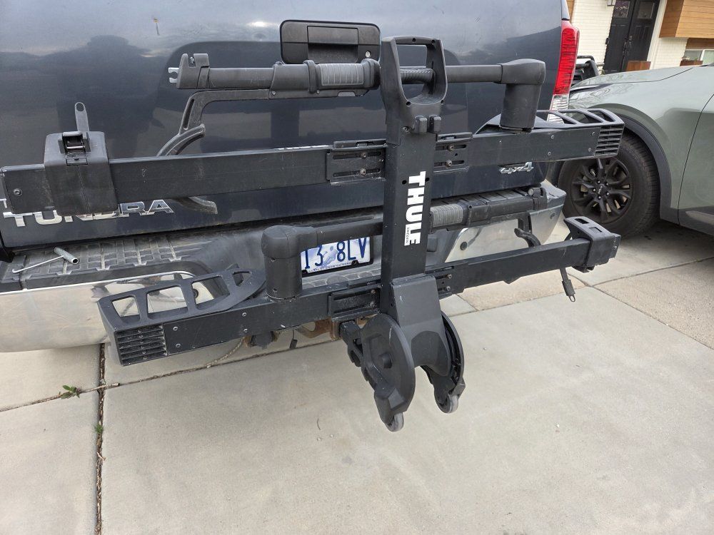 VenmoHello, selling our Thule XTR Pro 2 Bike Rack W/Hitch & Locks. This is the XTR model with wheels to move around. Designed for 2" hitch receiver. Absolutely nothing wrong with it. Fat tire ready, can haul bikes with up to 5" wide tires. Can haul E bikes, 29ers, fat bikes, road bikes, kid bikes 20" and larger. Has built in hitch lock and bike locks. Retails for $900.