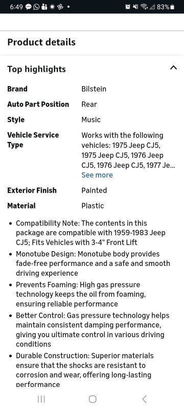 I have this single High performance Shock absorber. The box has definitely seen better days, however there is no cosmetic damage to the Shock itself, it compresses/retracts smoothly and firmly and has never been used. I have posted a picture from Amazon's website to give more specifications about the part. It's listed new on Amazon for $106