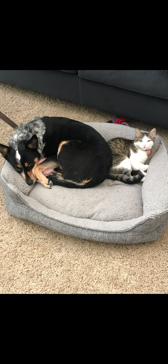 In a couple of the pictures, she is with her dad the Heeler and her mom the Aussie.
