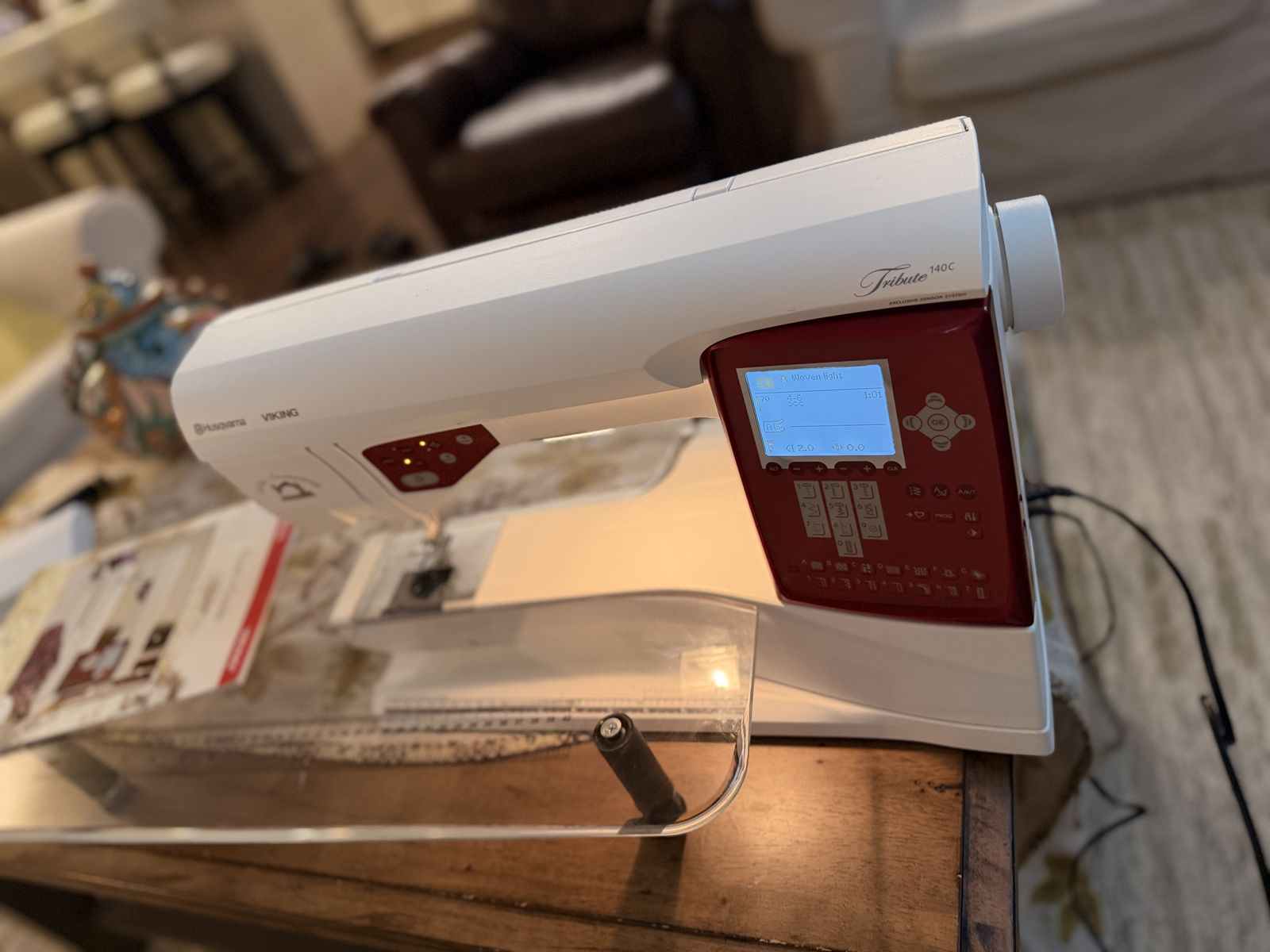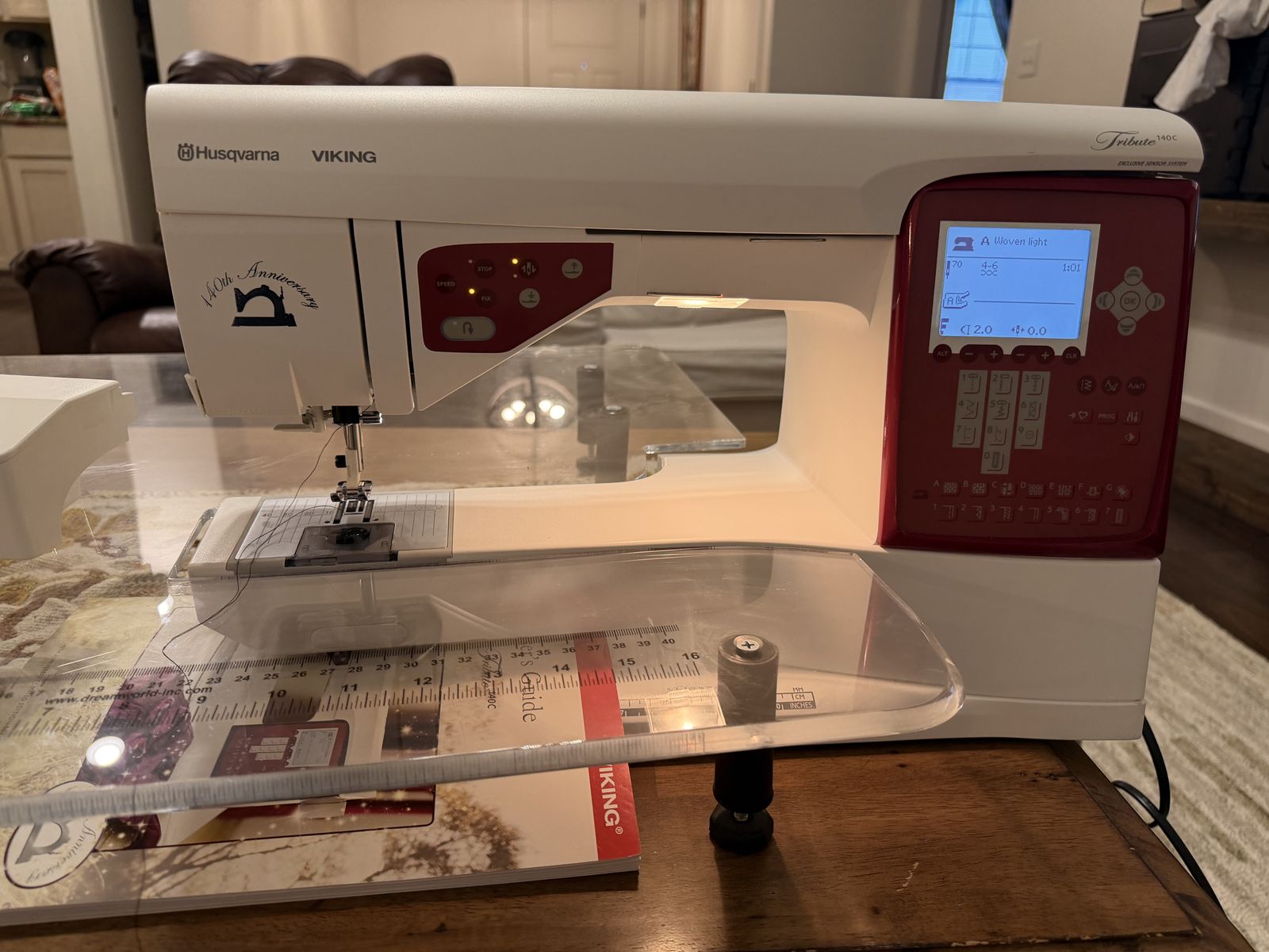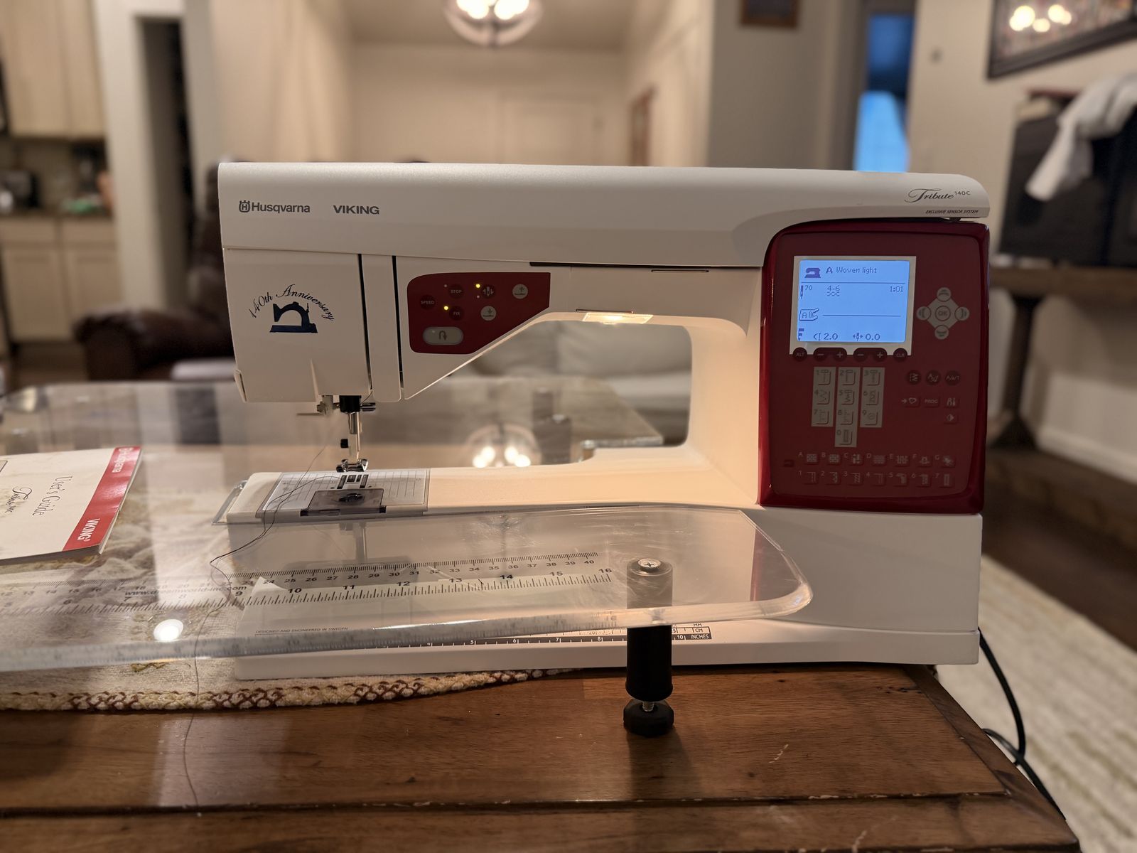 VenmoThe Husqvarna Viking Tribute 140C is a limited-edition, computerized sewing machine. Came with hard case, big and cute extension table, red carry on, manual and extras feets and cutting mat. The Husqvarna Viking Tribute 140C is a limited-edition, computerized sewing machine