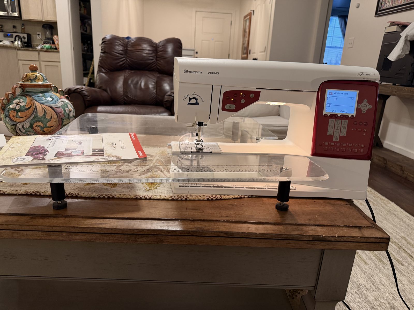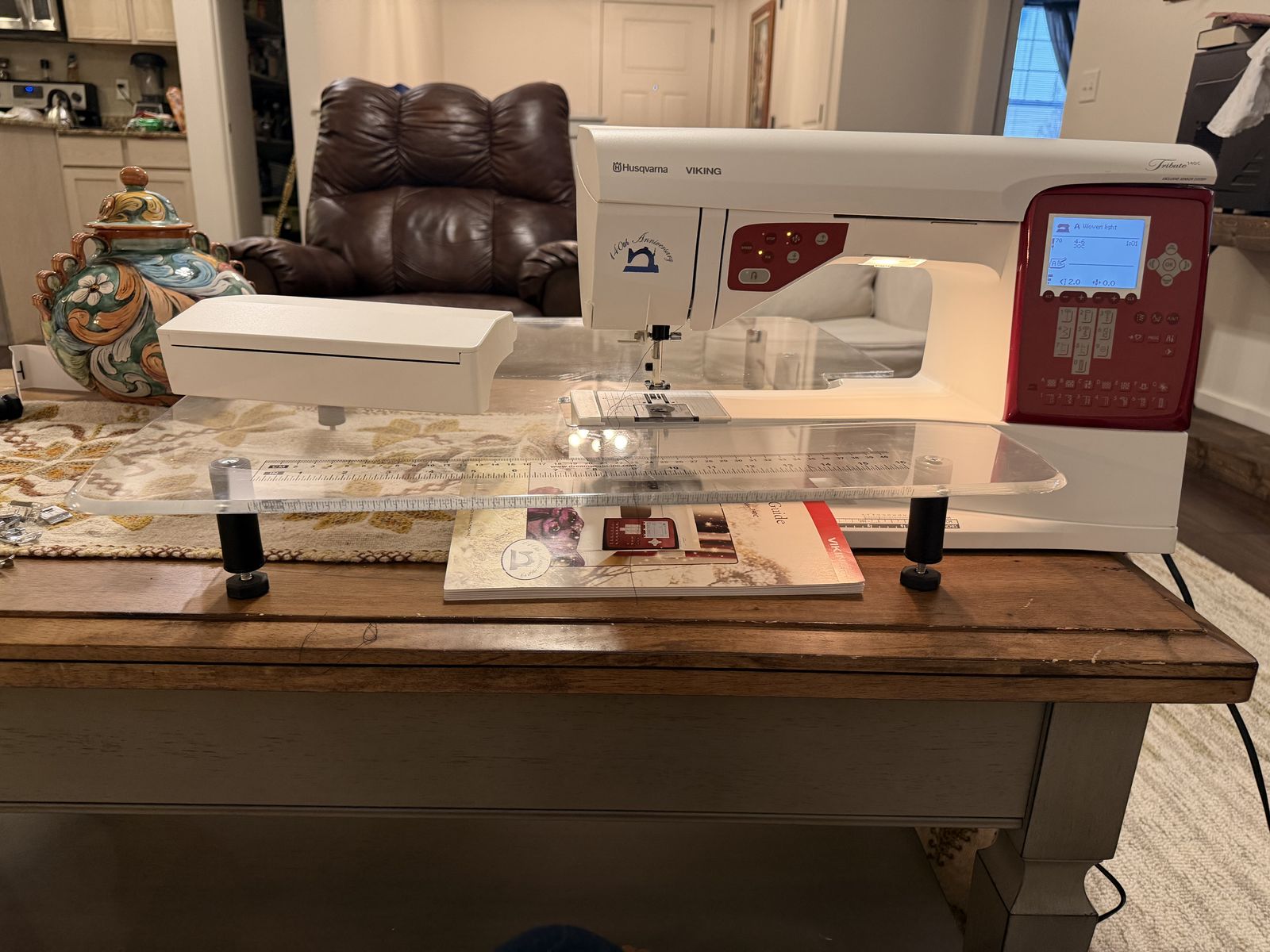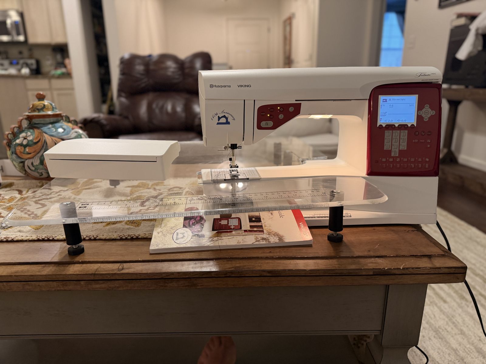 VenmoThe Husqvarna Viking Tribute 140C is a limited-edition, computerized sewing machine. Came with hard case, big and cute extension table, red carry on, manual and extras feets and cutting mat. The Husqvarna Viking Tribute 140C is a limited-edition, computerized sewing machine