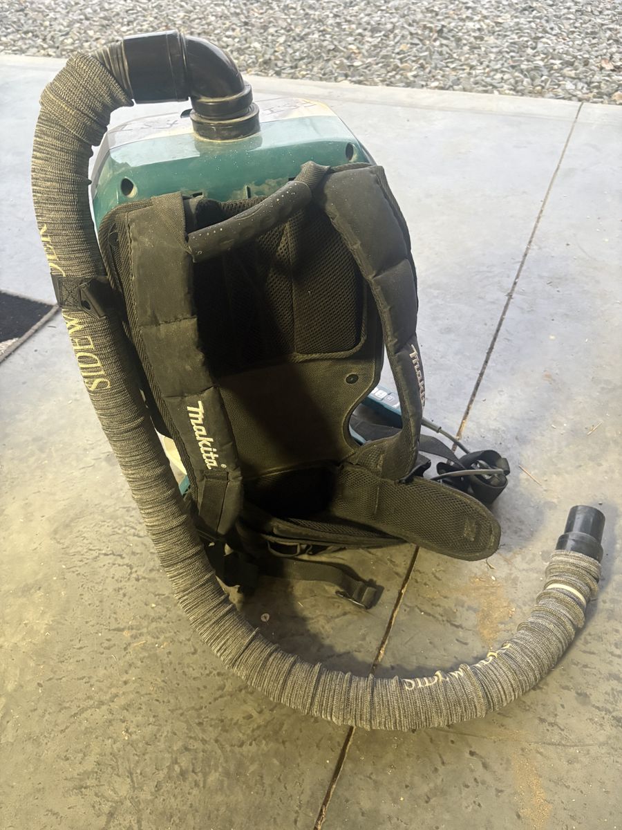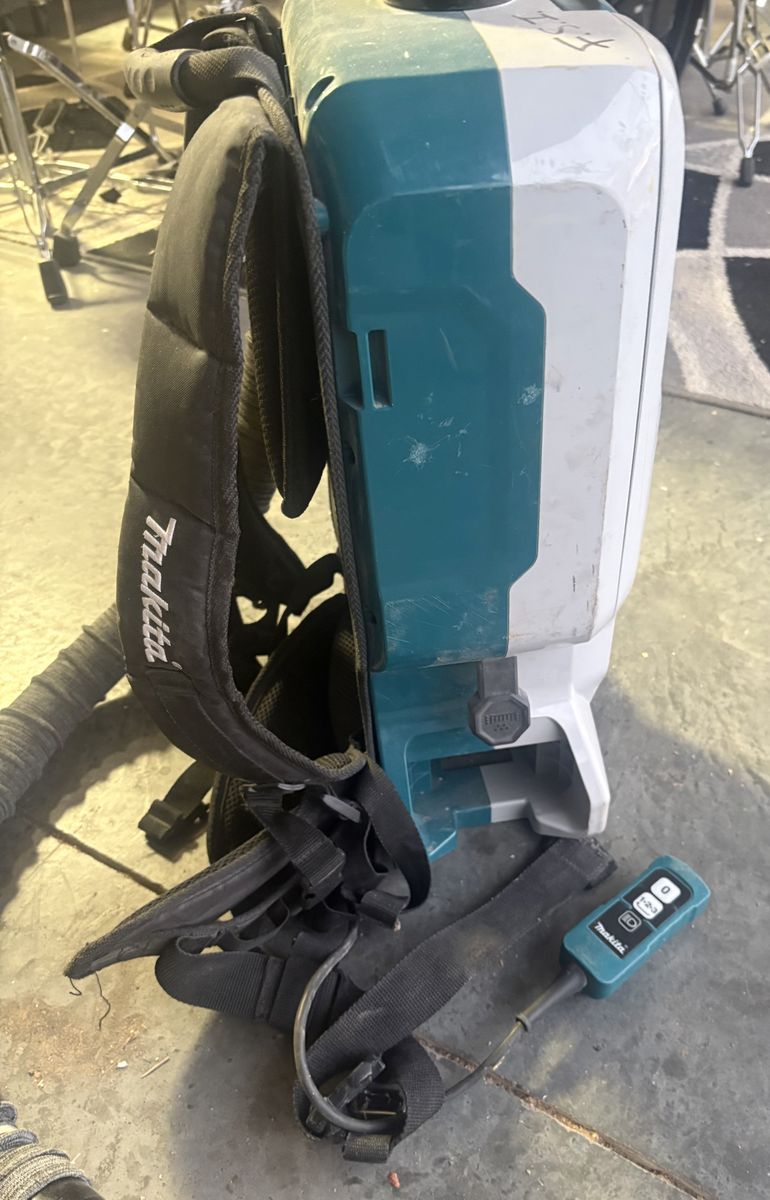 VenmoMakita 36V (18V X2) LXT Brushless HEPA Backpack Vacuum Great working Makita backpack vacuum. Runs on two 18V LXT batteries (36V total). Strong suction and HEPA filtration-perfect for job sites, garages, or shop cleanup. Includes: • Backpack vacuum unit • Hose and attachments • Shoulder straps/harness • Wired controller Condition: Used with normal cosmetic wear (scuffs/scratches), but works great. Battery and charger not included.