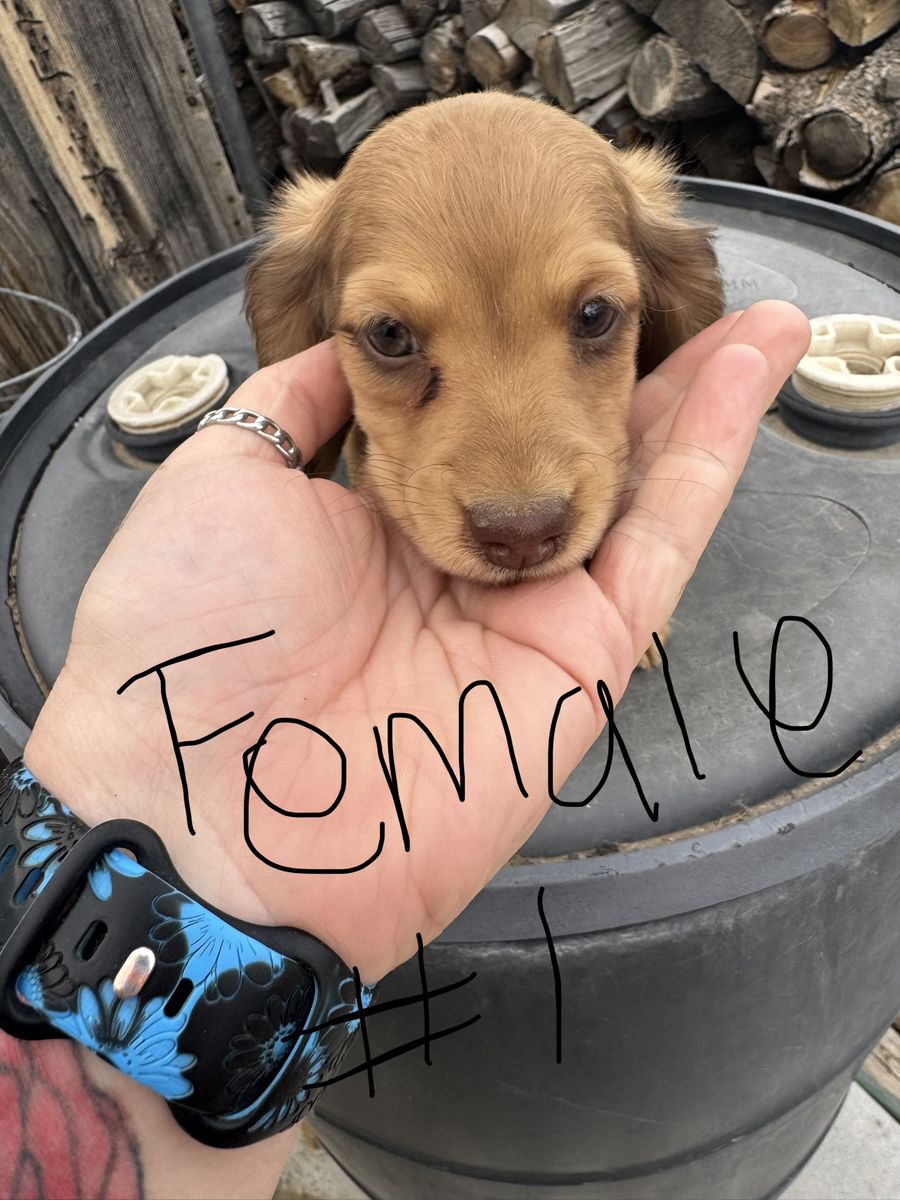 Pure bred long haired Dachshund puppies 8 weeks old. 2males 2 females. Have had 1st shot. Sweet babies.Also 1 Standard intact male dachshund 3 years old.Very sweet but shy until he gets to know you. $1500 each for the pups and the male Except the blue puppy because of his Rare color he is $2000. Please call don’t text Dawn at 435-8fivefive-2one5eight