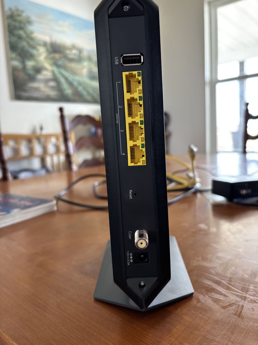Gently used router / cable modem combo. Comes with a coaxial cable, Ethernet patch cable, and power supply. Best Buy link for more info: