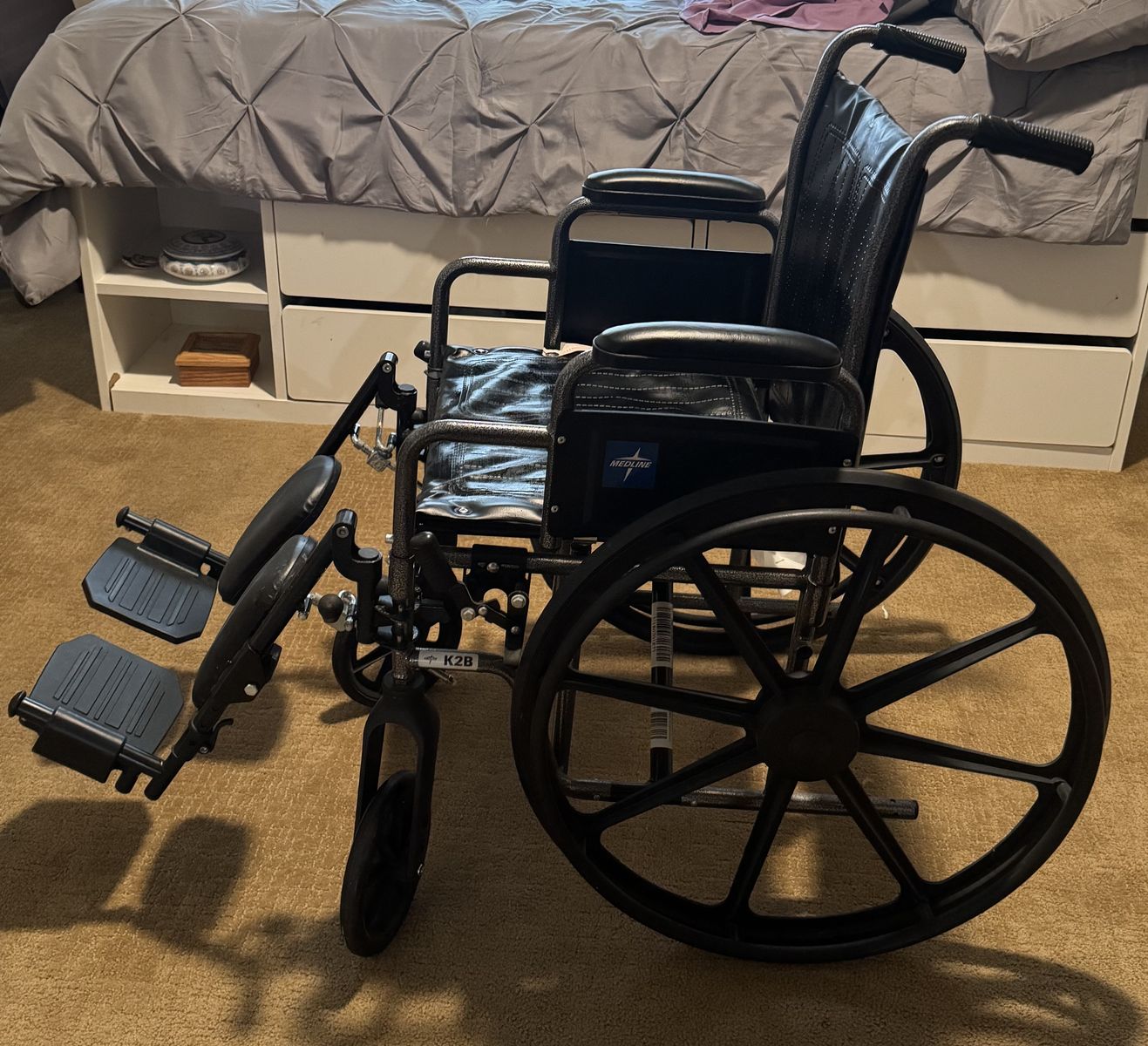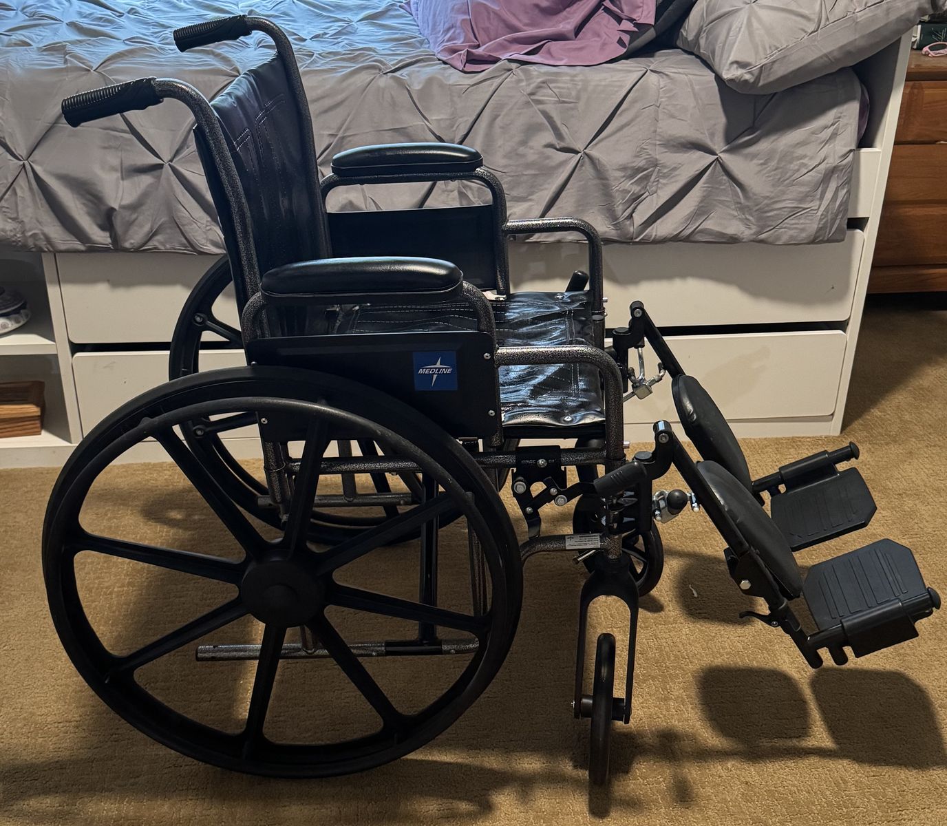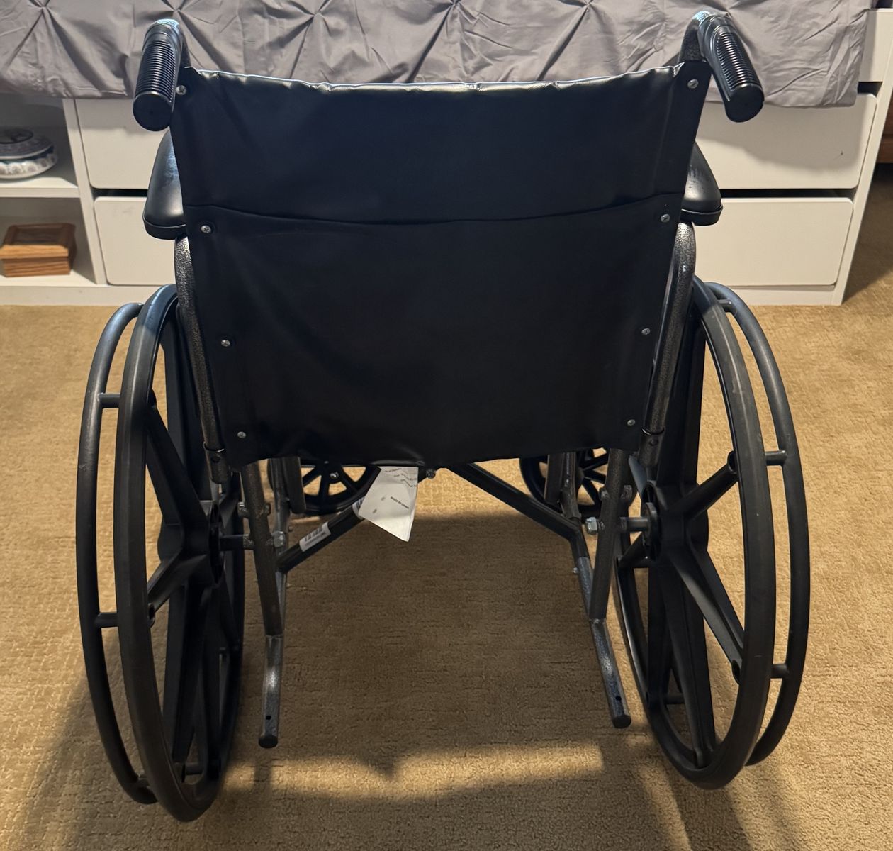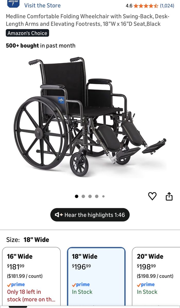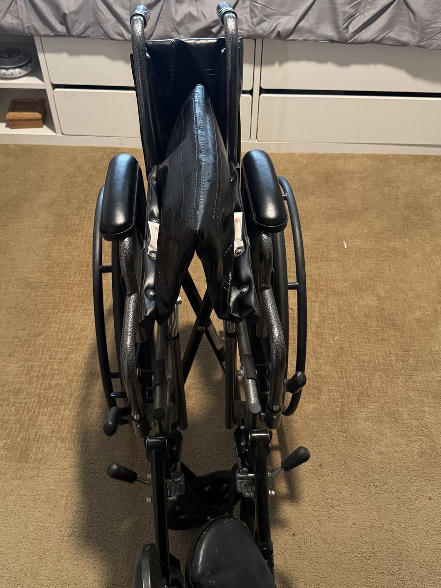 PayPalMedline brand black manual wheelchair. 18” seat. Used as a backup to a power chair so it’s almost like new. No tears.