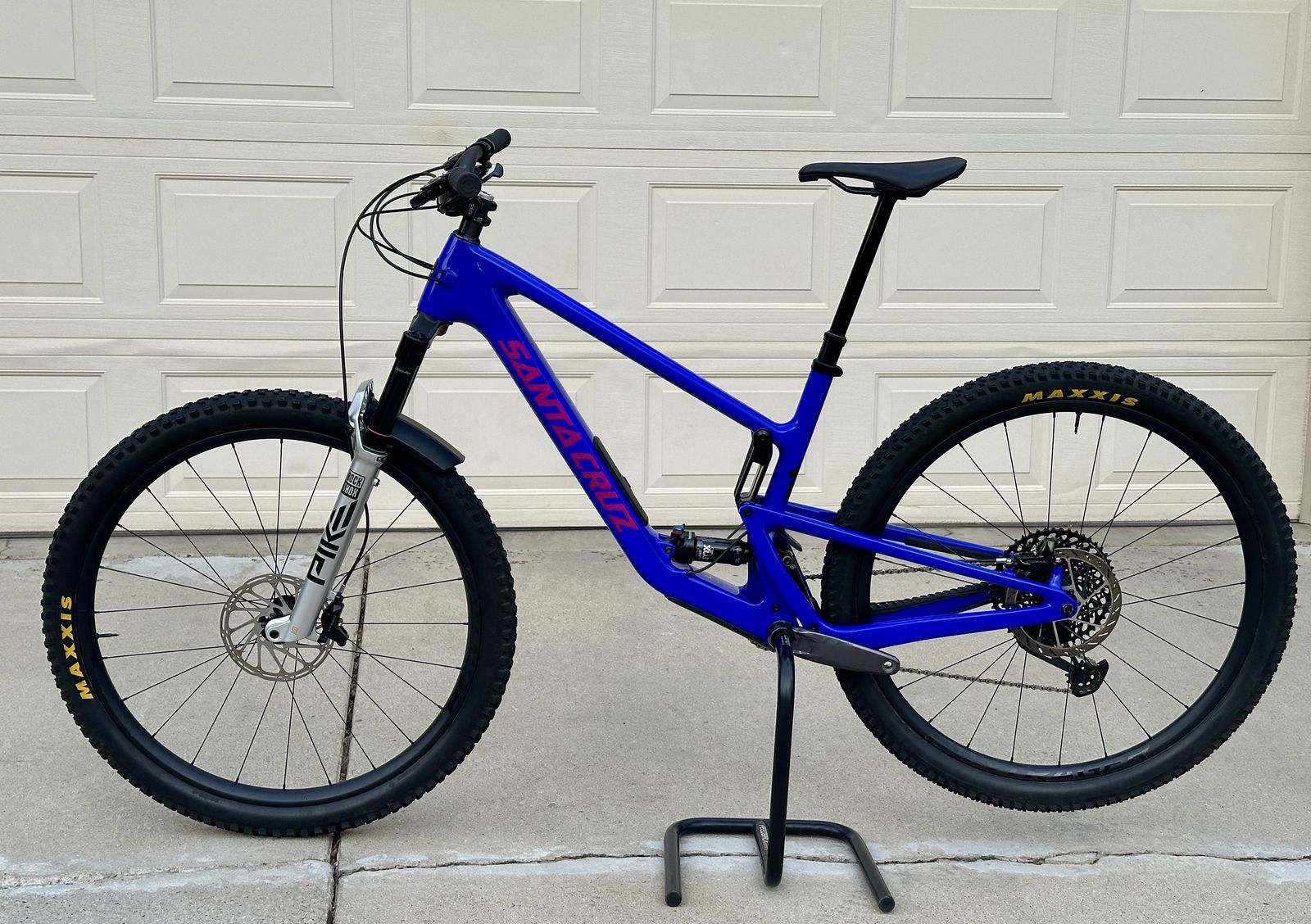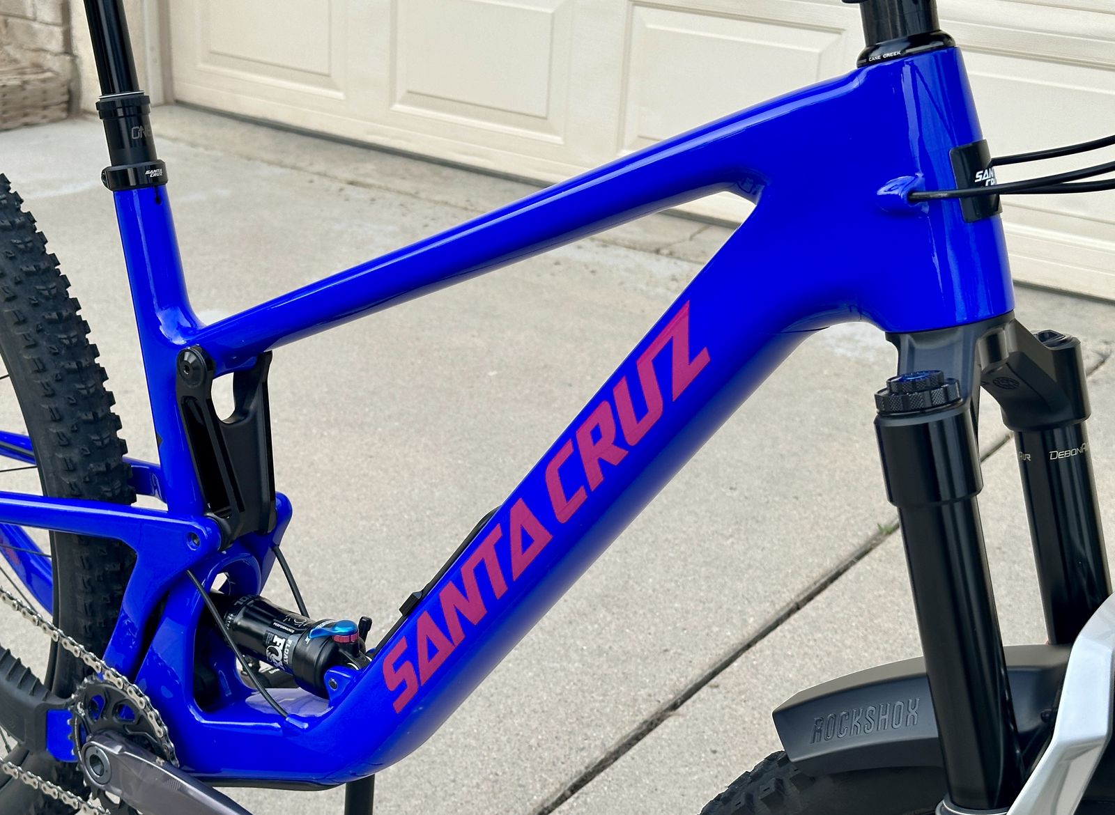 Frame: Large Tallboy V5 carbon (current generation with storage compartment), mint condition. Fork: Pike Ultimate 140mm, Charger 3 damper, perfect condition. Wheels: Carbon Bontrager Kovee Elite 30 with rapid drive hub, excellent condition Brakes: SRAM Code Stealth Silver, only five rides, like new. Drivetrain: SRAM Eagle XO1 shifter, GX cassette 10-50t, derailleur, cranks w/ CNC 30t chainring. Seat post: Oneup V3 210mm, only five rides, perfect Handlebars: OneUp V2 Carbon 50mm rise, perfect. Tires: Maxxis Dissector and Rekon, 3C Maxxterra, EXO