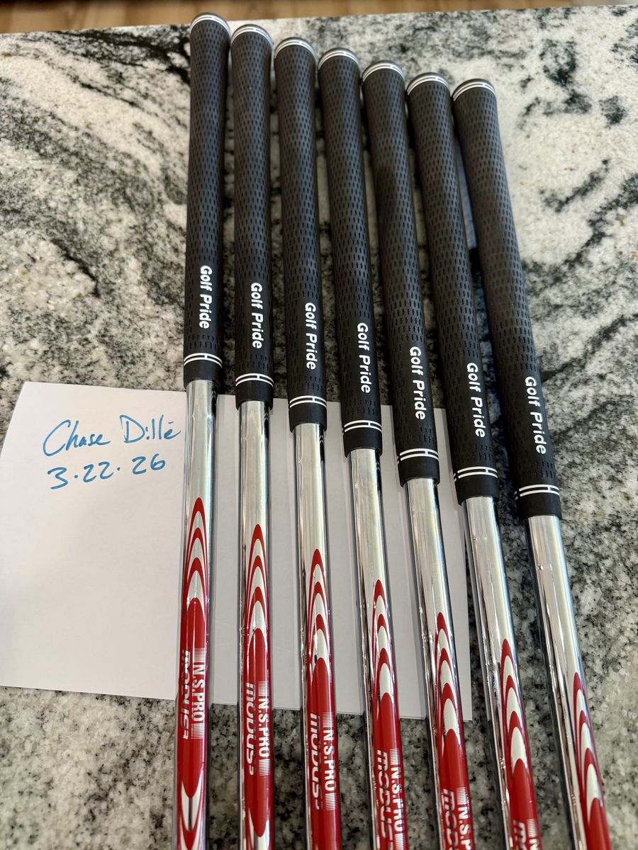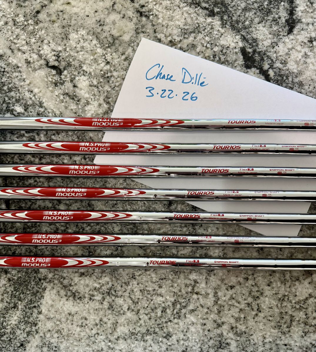 Nippon Modus 105X shaft pulls 4-PW Brand new Golf Pride Tour Velvet Standard size grips. Length is -1/4 of PXG std iron lengths Open to trade for Modus 120X or 120TX