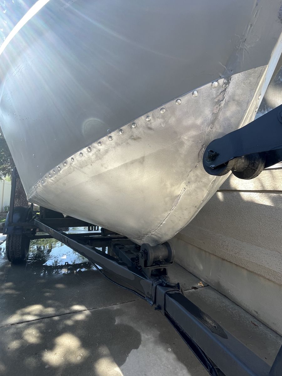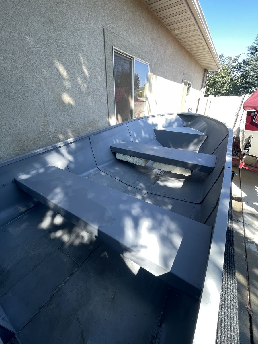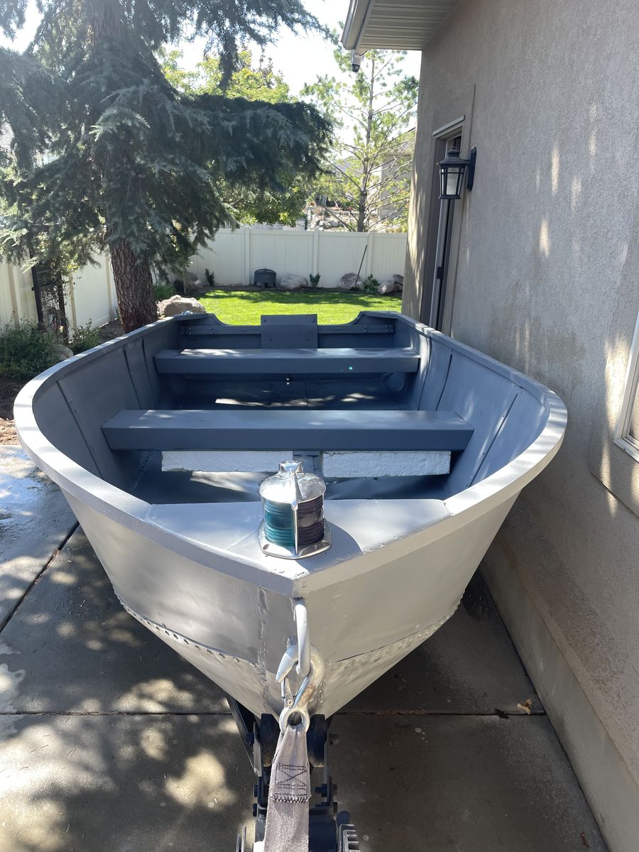 Venmo11 ft aluminum project boat. I inherited this boat and have invested significant time and money but I no longer need it. I stripped the outside down to metal and sealed all rivets and seams with epoxy. The inside was stripped and flex sealed. New drain plug installed. The transom is solid and ready for a motor. The boat needs to be rewired, but I have the original bow light and stern light.