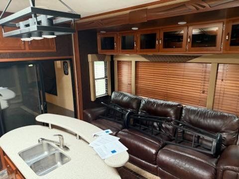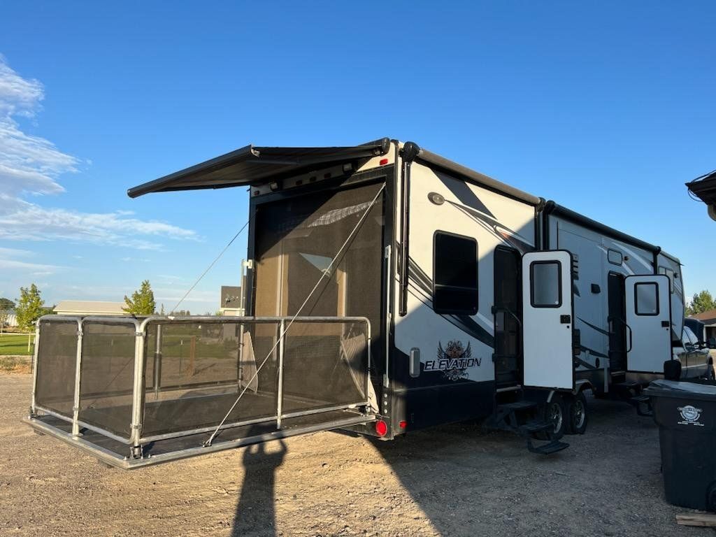 2014 crossroads elevation 3612 Selling in good condition been an amazing toyhauler for me and my family. 12 foot garage plenty if room for toys that turns into a place for kids, 2 queen happy jack beds that come down there's a screen that rolls down, ramp turns into a deck has all kicker speakers and subwoofer with outdoor speakers 3 tvs one included in the toyhauler garage is separate from living area with sliding glass door, spacious living area, 3 electric awnings, 5500 onan on boars generator, gas/electric 10 gallon water heater 110 gallon fresh water tank two 30 gallon Grey tanks one 40 gallon black tank with sanitary wash in black tank, stand up corner shower, porcelain toilet two ac units that fantastic, 30 gallon fuel station, washer/dryer hookups this toyhauler is loaded. Any questions text or call 2086701907