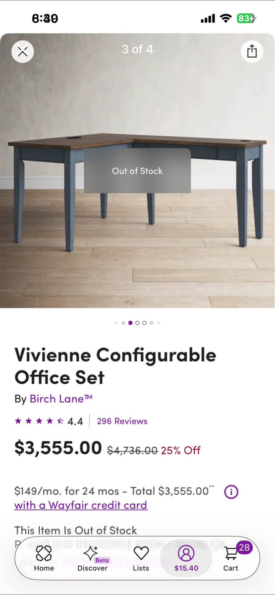 PayPalDesk for sale. They sent a version that’s slightly longer than the standard (probably part of the L-shape set) so it’s actually 24x48 and easily fits 2, up to 3 monitors. The desk plugs in and has a usb and an outlet on the top/back. Great desk and in “like new” condition! $250 or best offer!