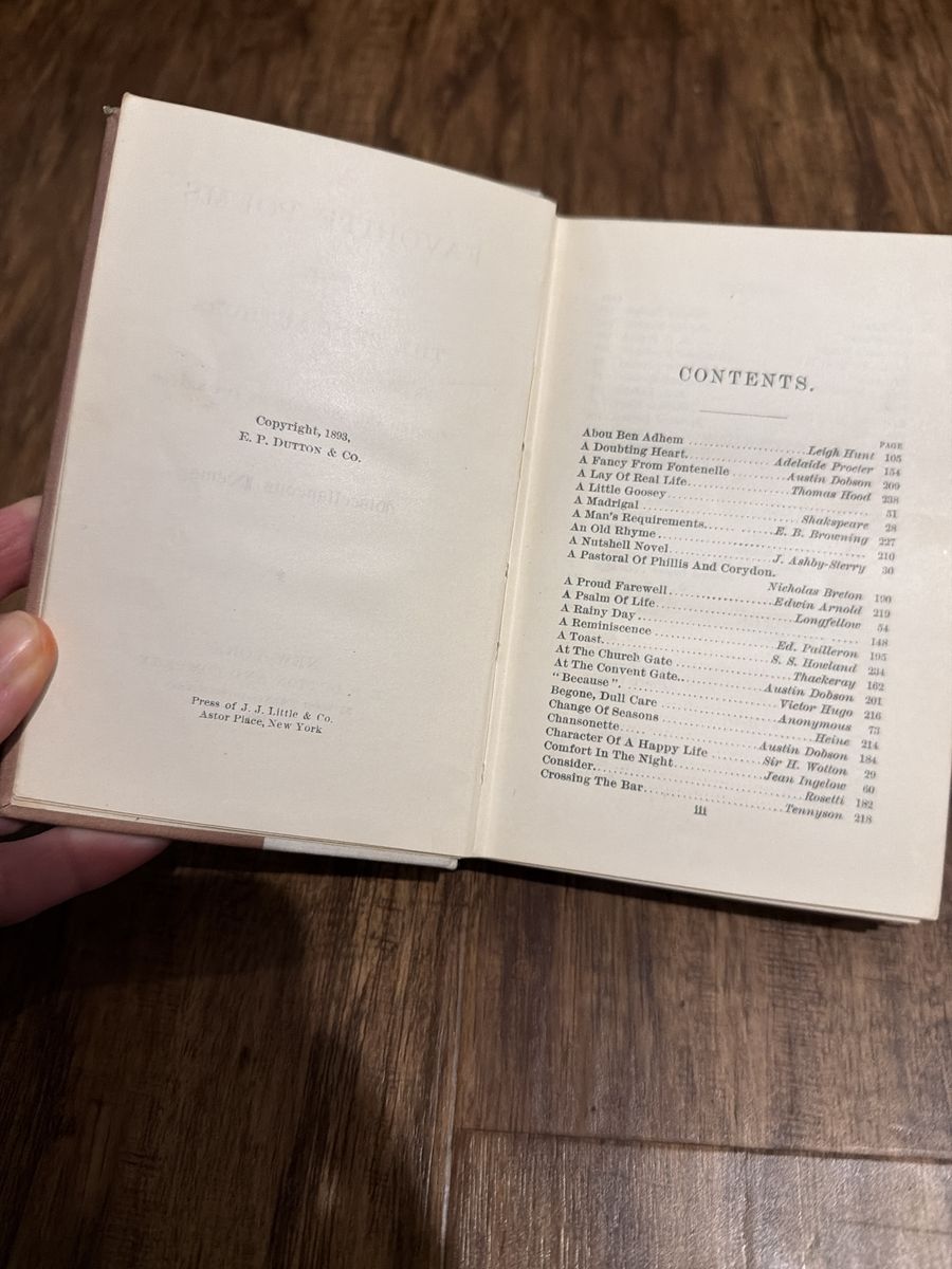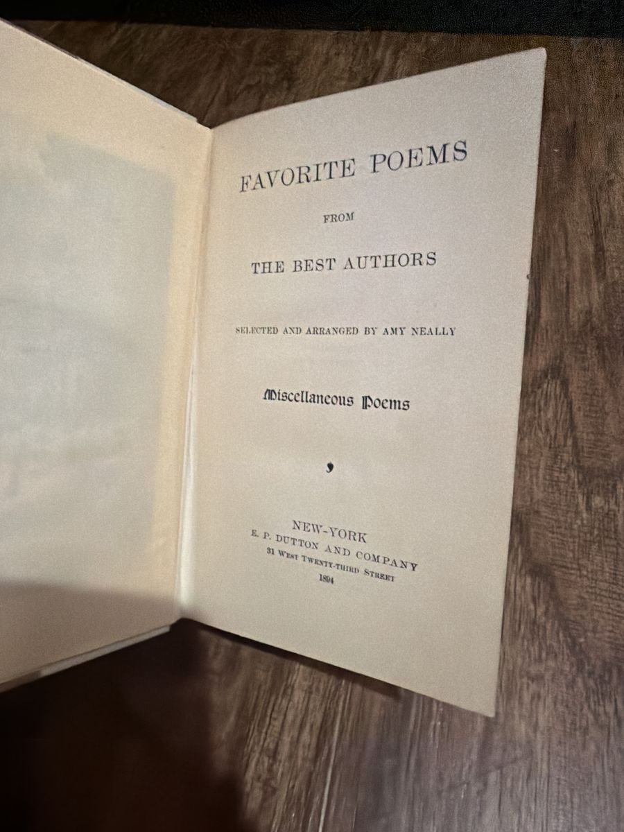 ZelleAntique 1894 copy of Favorite Poems – Miscellaneous, a beautifully bound Victorian-era poetry collection.