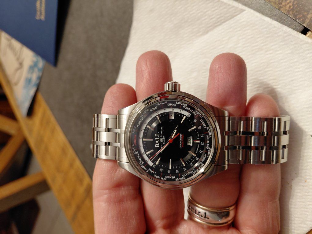 ZelleThis is a beautiful ball trainmaster worldtimer reference number gm2020d-s1cj-bk. It's like new as I've only had it less than two months. This one has the date and day function and the 24 hour gmt function so you can know the time in every time zone across the globe. This comes as a complete set with all the boxes and paperwork and full links. They retail at over $3K. Asking $1700. May consider trades for other fine watches or a nice 1911 in 45acp.
