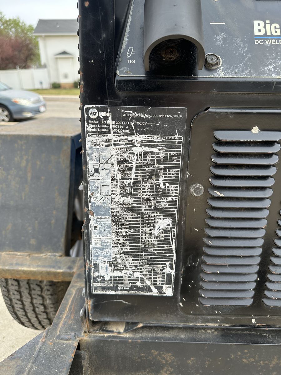 2012 miller Big Blue 300 Pro welder up for grabs. Cat motor, fires right up, runs great. All 120v outlets work. Comes with a nice. Come test weld with it. No leads but have some you can test with. Comes with trailer.