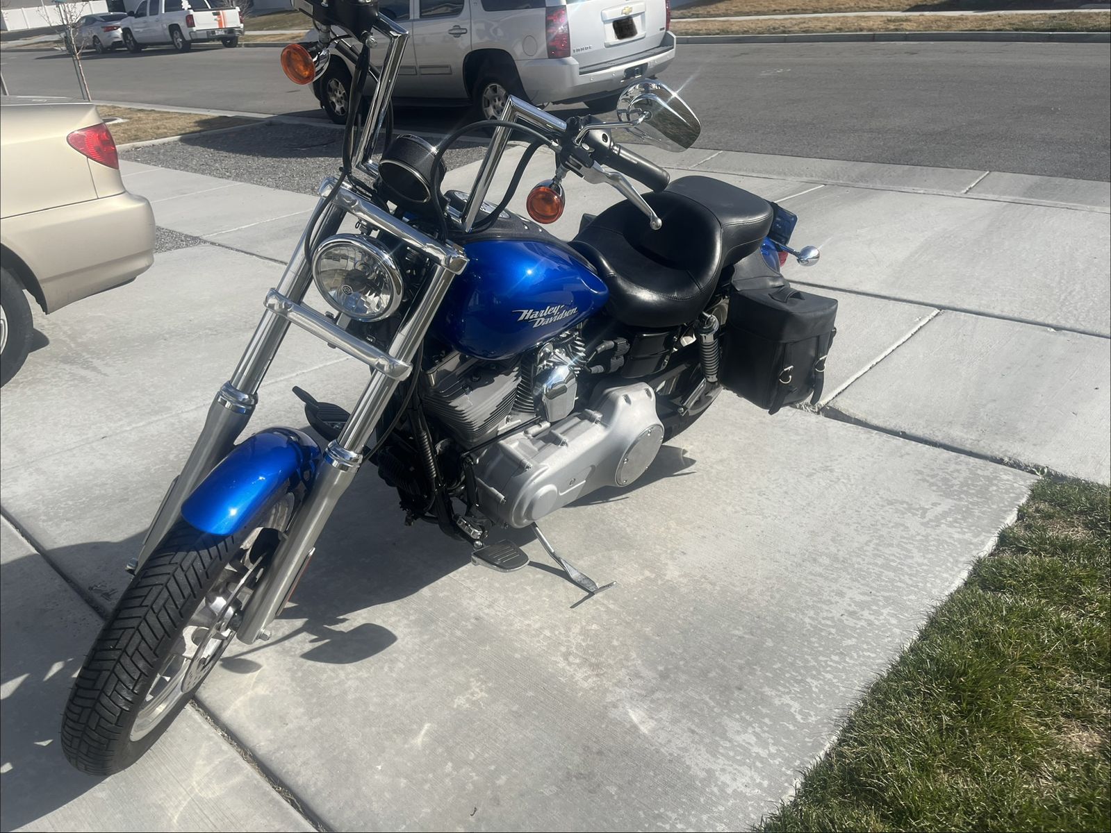 Selling my Harley Super Glide. Runs great no issues with it, just don't have time to ride it very much. Has Forward controls on it, V&H short shot pipes, fuel controller, and upgraded air filter. It comes with leather saddle bags, detachable windshield, and detachable sissy bar. Text or message me for questions about it.