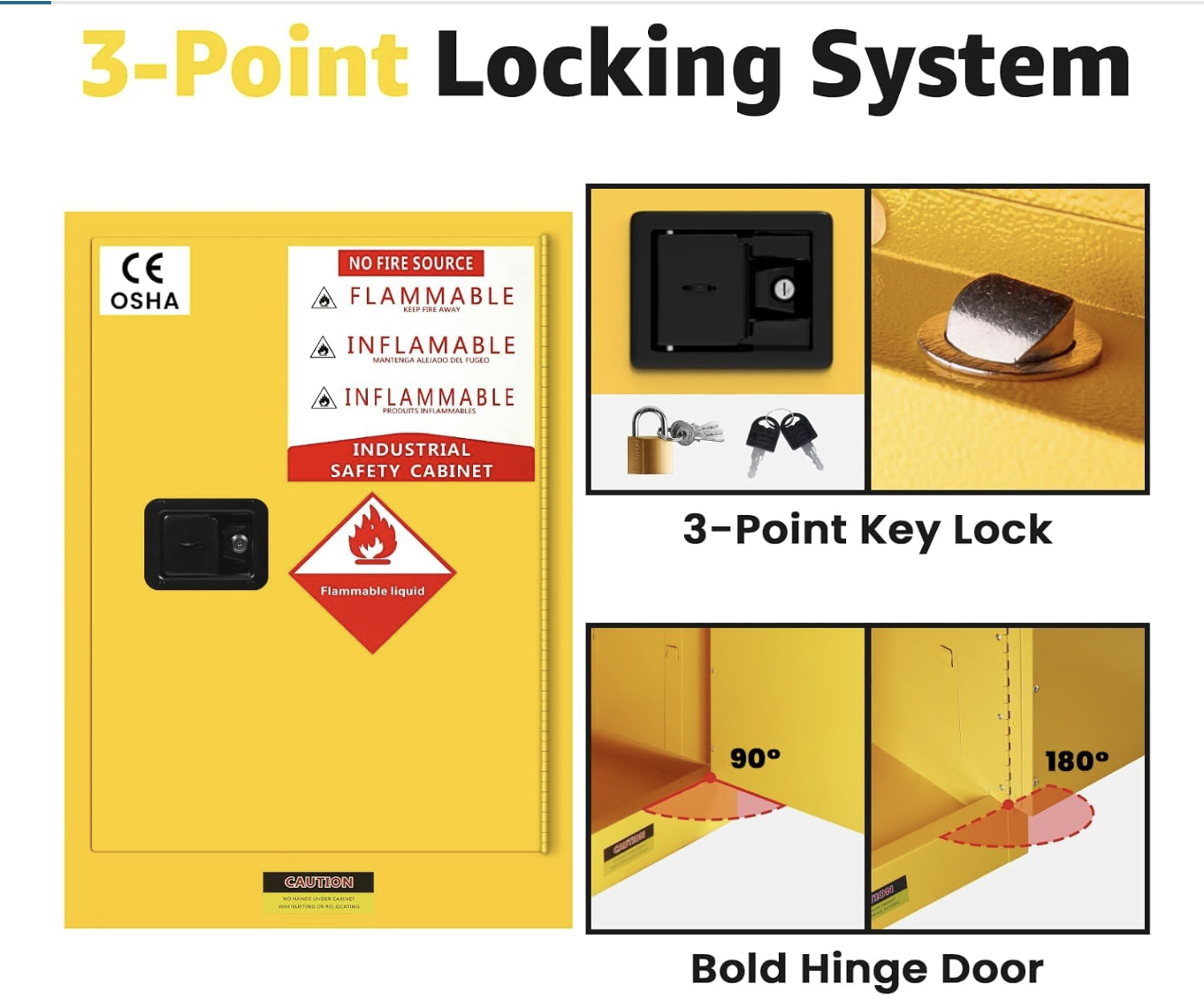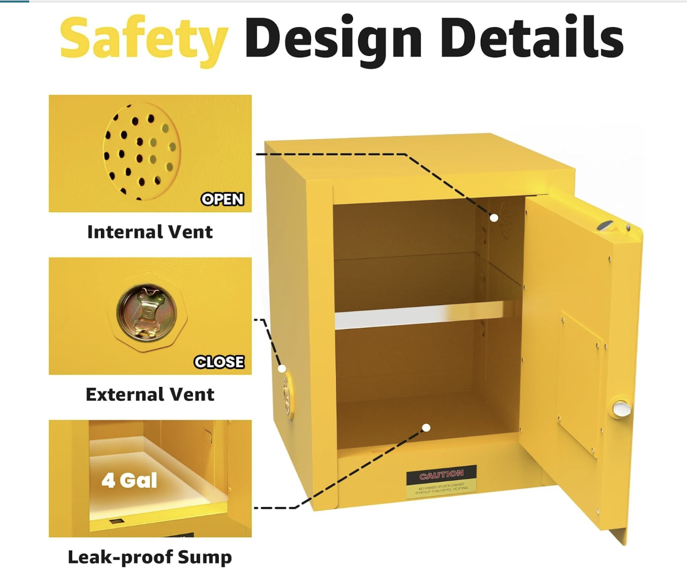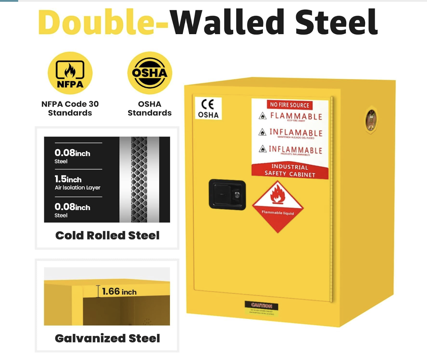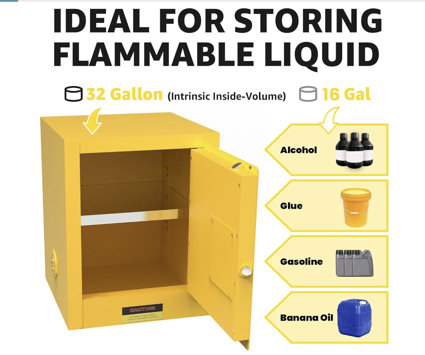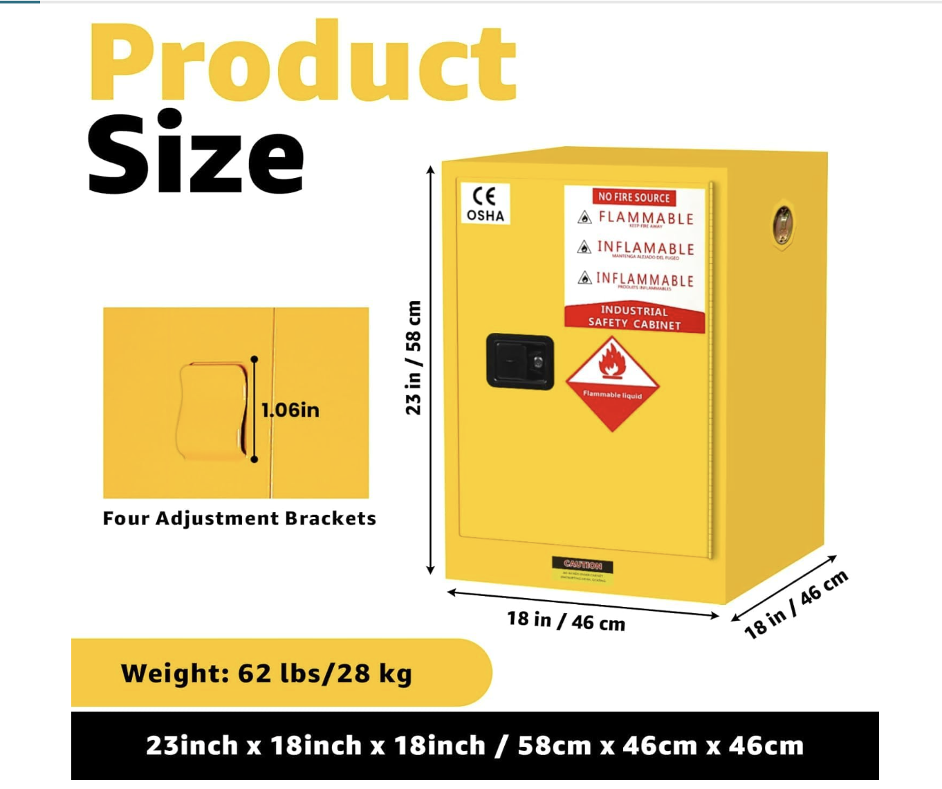Brand new 16 Gallon Flammable Storage Cabinet, 23.5" H x 18.11" W x 18.11" D Thickened Galvanized Steel Flammable Safety Cabinet, Fire Safety with Adjustable Shelf, for Industrial and Home Use
