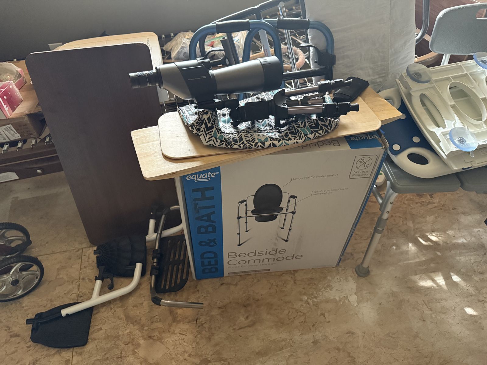 PayPalShower chair-$20 Rolling walkers-$25 each Standard walkers-$10 each Unused bedside commode-$25 Motorized lift chair-$100