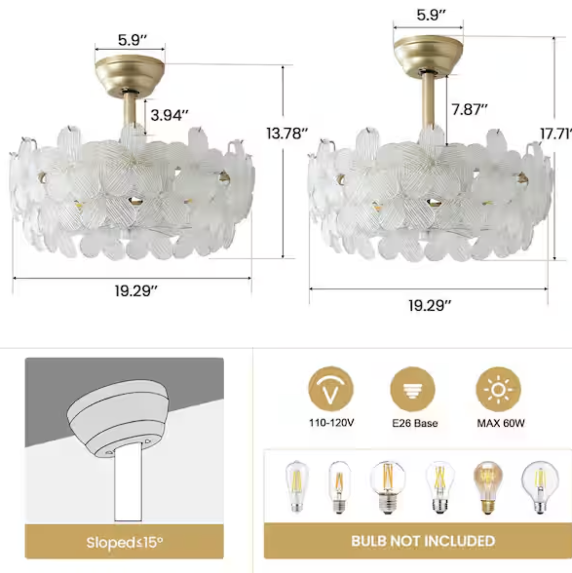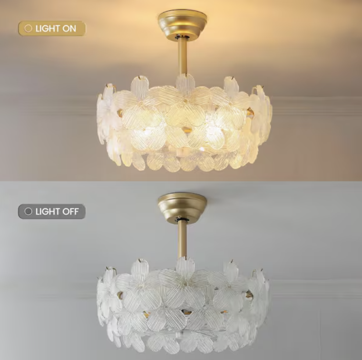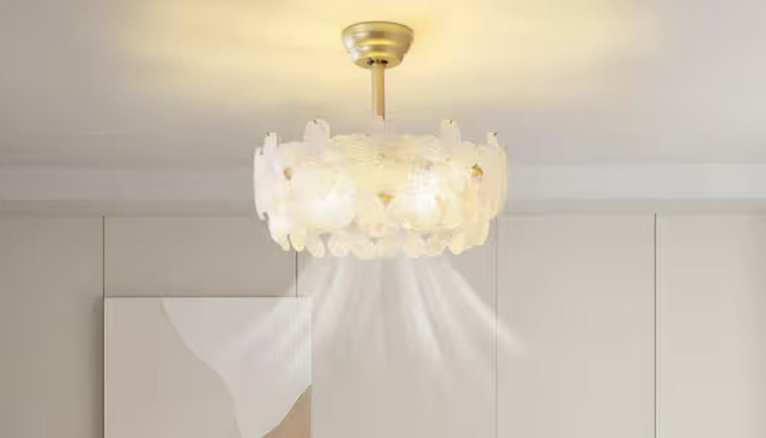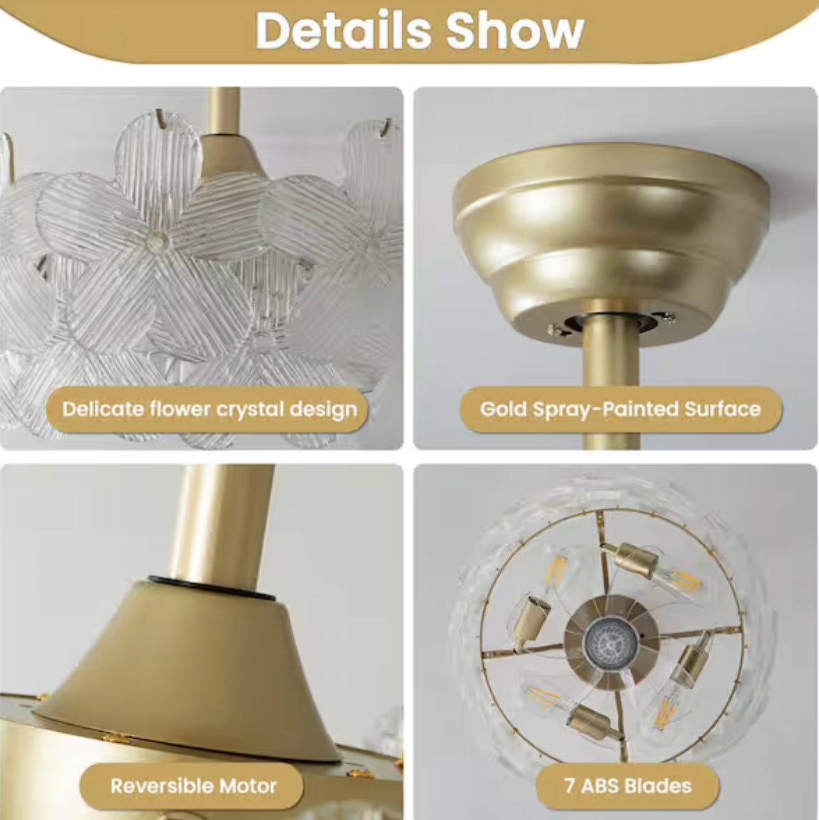 Brand new in box, 19 in. Indoor Modern Enclosed Crystal Flower Gold Ceiling Fan with Light and Remote Control 6-Speed Reversible Motor