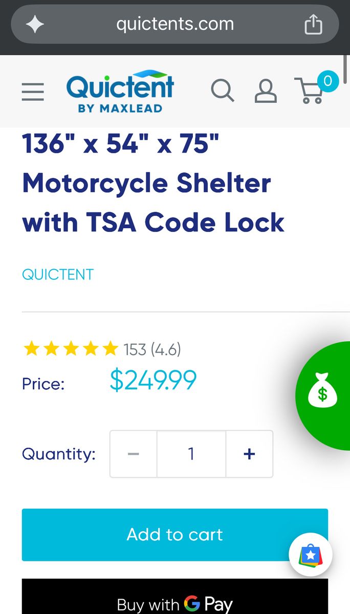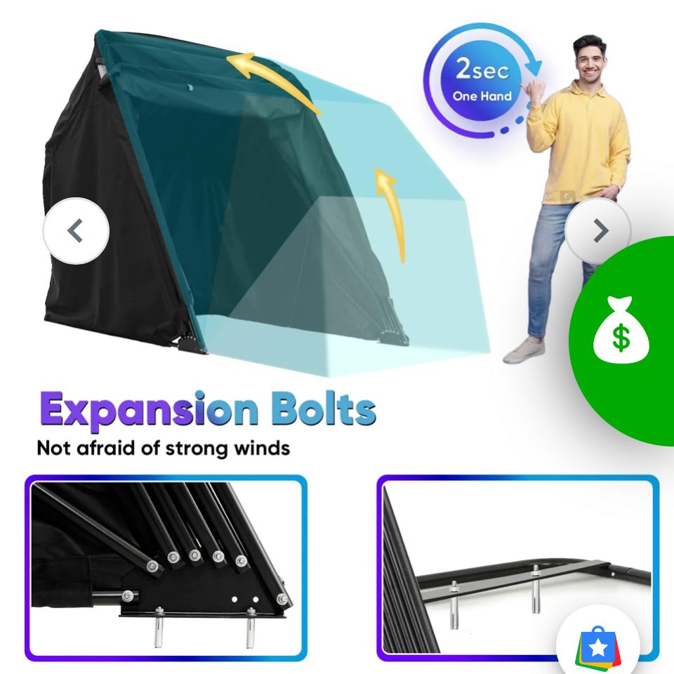 Durable frame. The frame of this small motorcycle shelter is made of heavy-duty powder-coated steel that is strong and durable enough to protect your motorcycle for a long time. 100% waterproof cover. 100% waterproof 600D oxford cloth PU coating protects your motorcycle or bike from water and reduces harmful UV rays. Ventilation window. This shelter has mesh ventilation windows with roll-up shades on both sides to promote ventilation and reduce moisture. Security guarantee. The black TSA combination lock reduces the risk of motorcycle theft and gives you greater peace of mind. A great option for saving money. Black TSA combination lock, durable 600D waterproof oxford cloth carrying bag, and 4 expansion bolts are delivered to your home with the package. You don't need to buy these supplies extra, which will save you money.