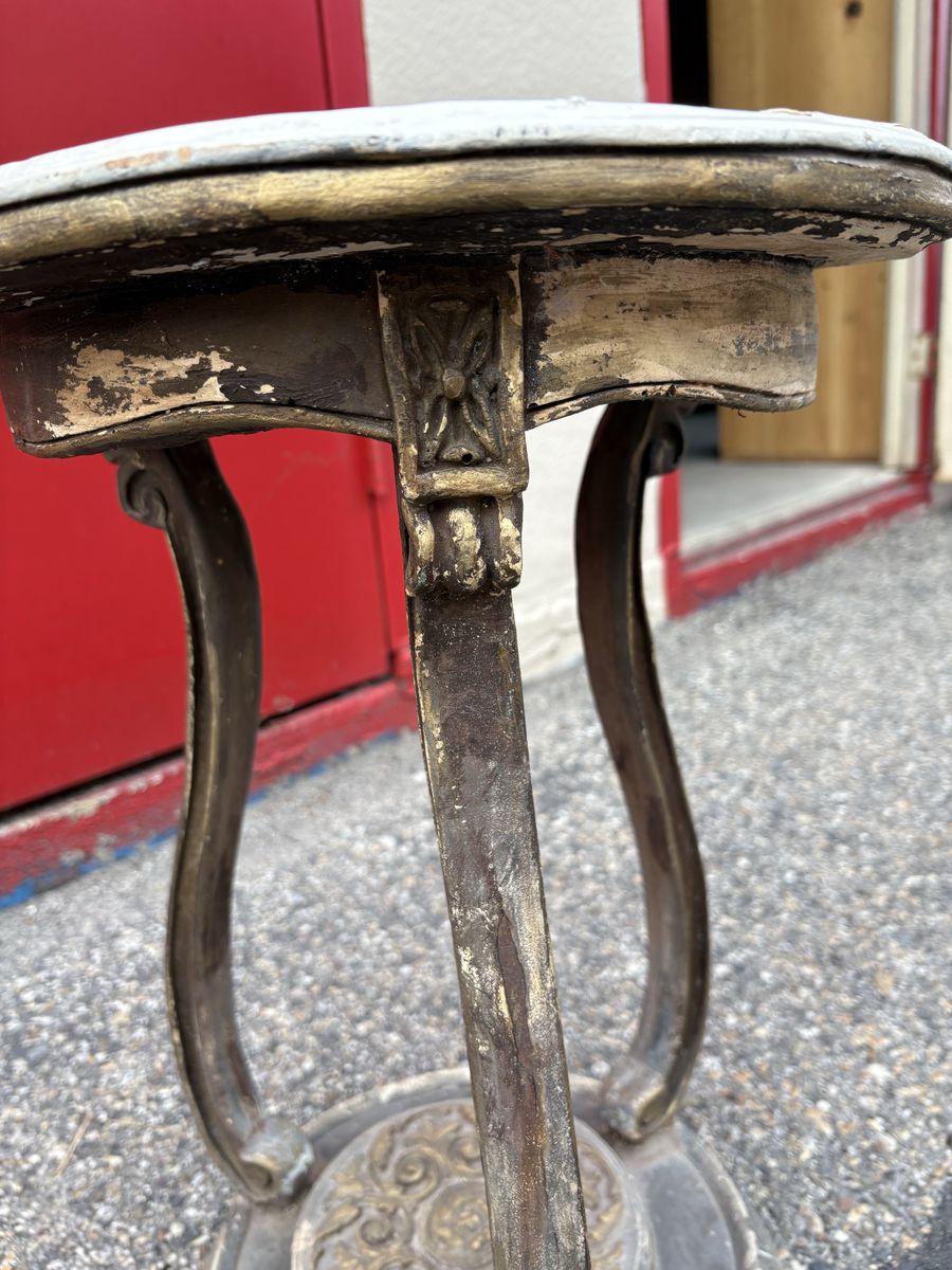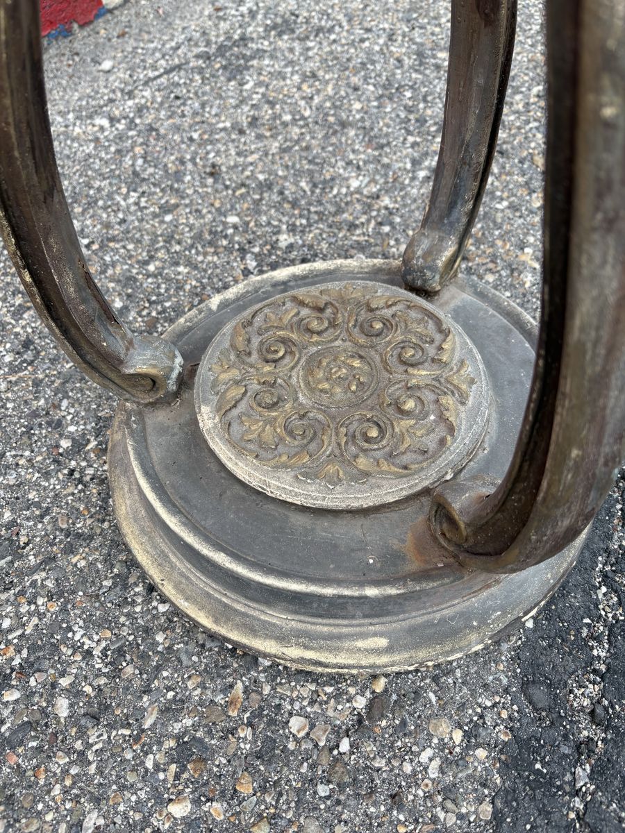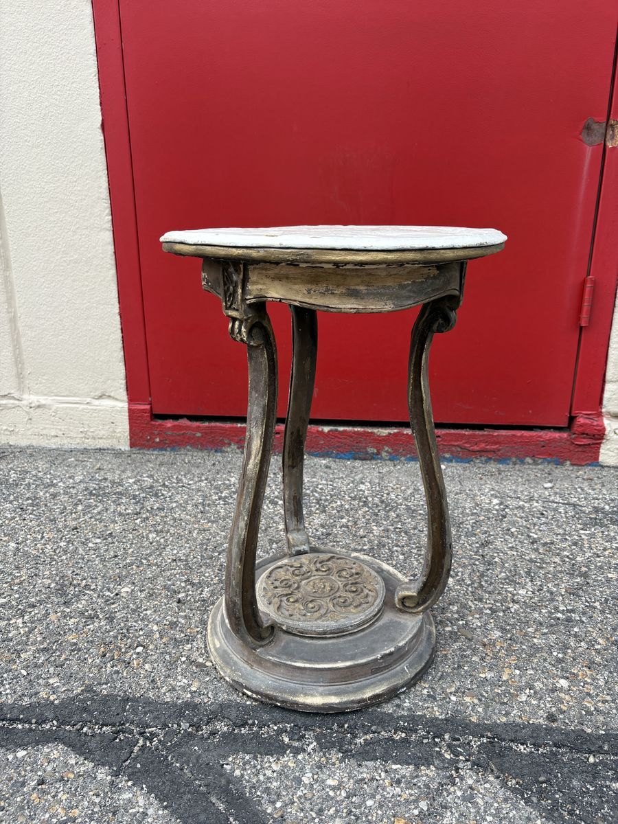 VenmoBeautiful vintage accent table with ornate metal base and curved legs. Solid, sturdy, and full of character—perfect as a plant stand, side table, or decor piece.