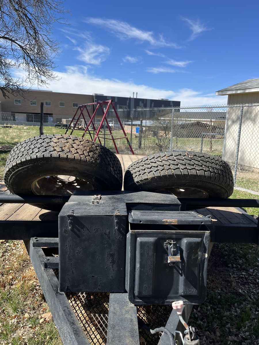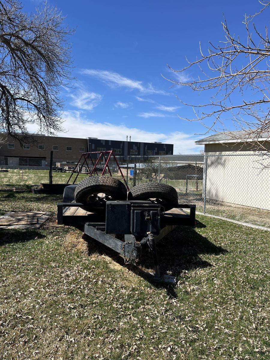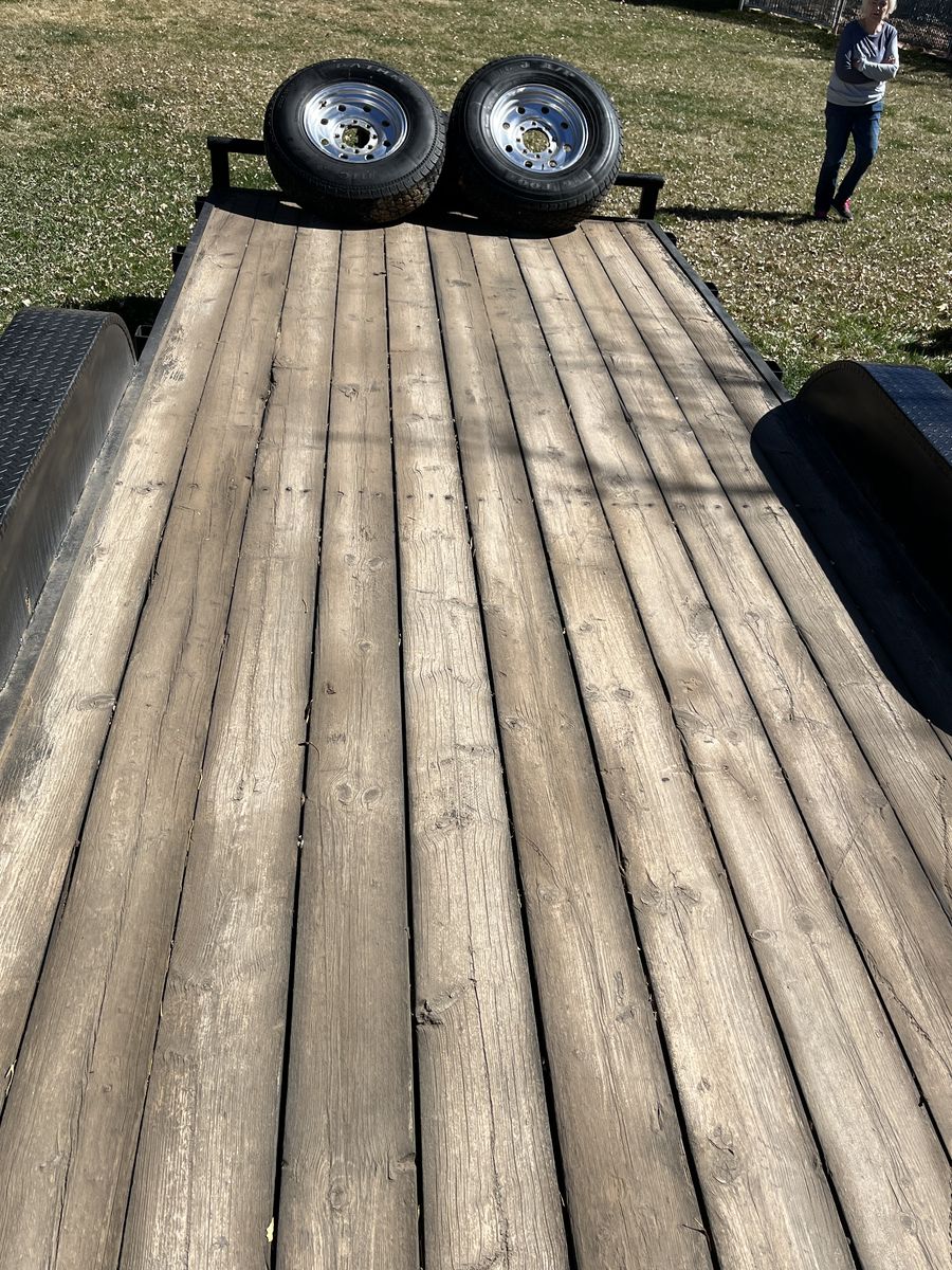 18 ft. flat bed 8,000 lb tandem axles brakes on both axles 2 steel ramps that are 7ft long 8,000 lb electric winch 30 ft plus steel cable many chains and straps 6 aluminum 16 inch wheels. 4 excellent tires 2 spare tires Need battery for winch electric switch for winch The wood has always been oiled so it is still in amazing shape $6,500