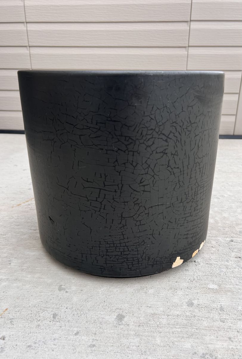 VenmoVintage Gainey Ceramics planter, model AC12, made in La Verne, California (etched on bottom). Classic mid-century modern cylinder form with a beautiful matte black textured glaze.
