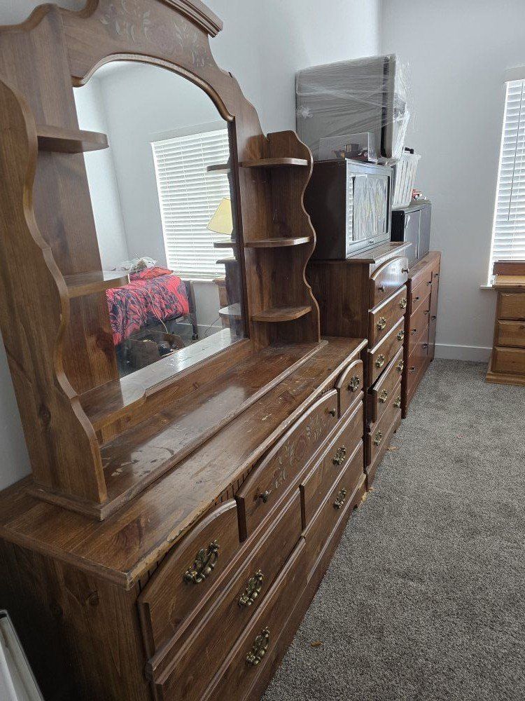 PayPalbedroom set dresser, mirror, chest, and night table..100 for the set. Need it gone asap. if I don't answered messages timely I may not have recieved it. please try text text