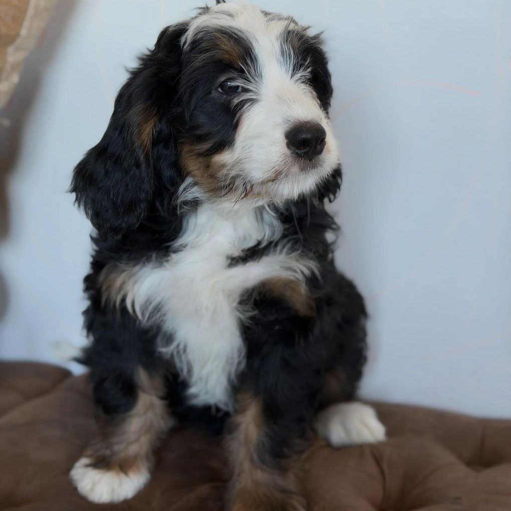 ZelleOur last 2 tri color bernedoodle girls are available and ready to go! They are the sweetest pups and are looking for their forever home.