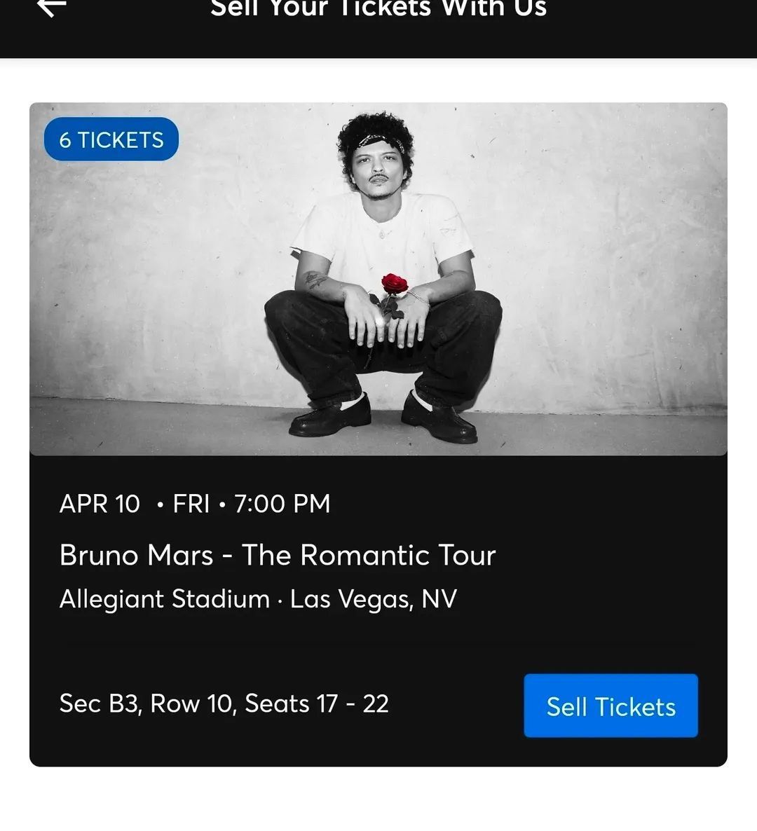VenmoI have 4 tickets to Bruno Mars for Friday, April 10th.