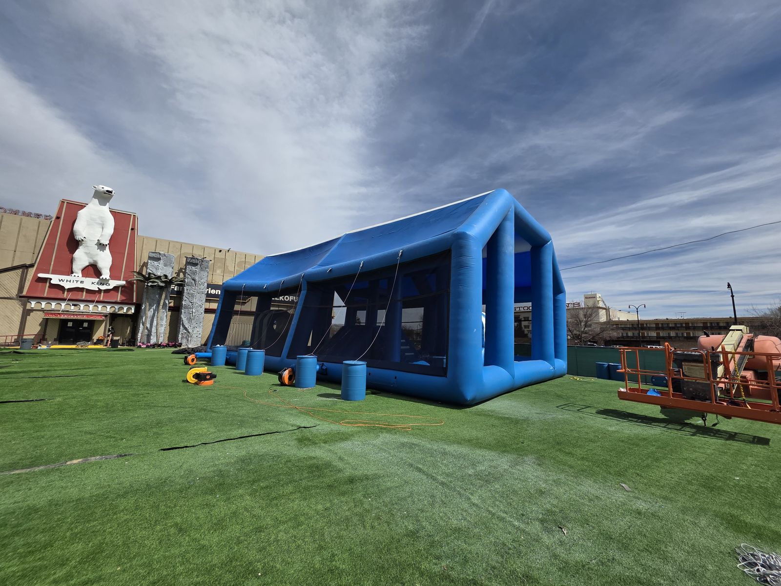 Large covered inflatable structure