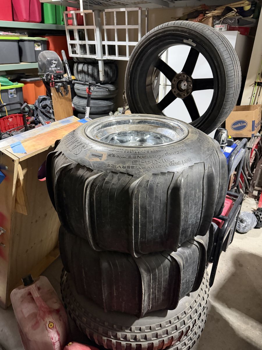ApplePay15x15 5x4.5 I only have two They currently have sand paddles mounted on them. Just wheels: $500 Wheels with paddles: $650 Rear set with front mohawk tires: $750