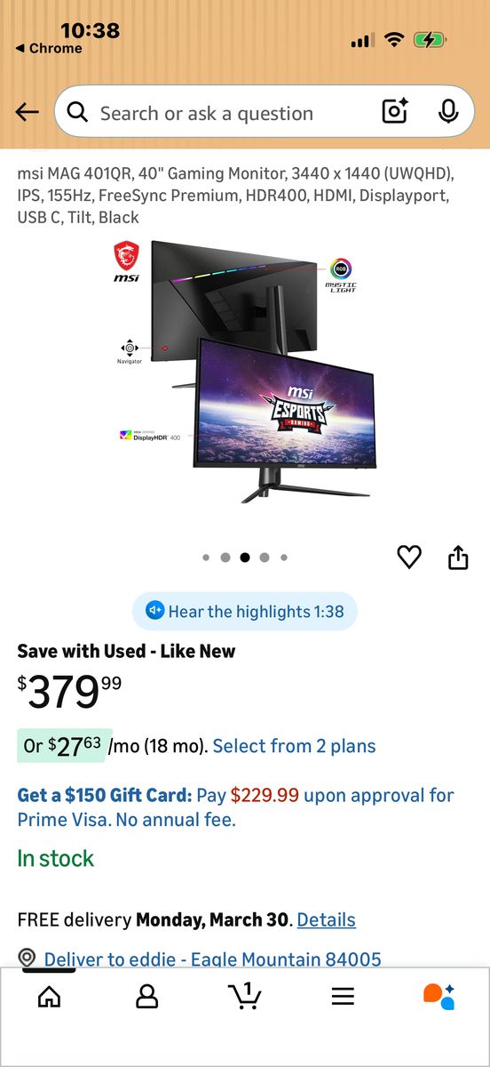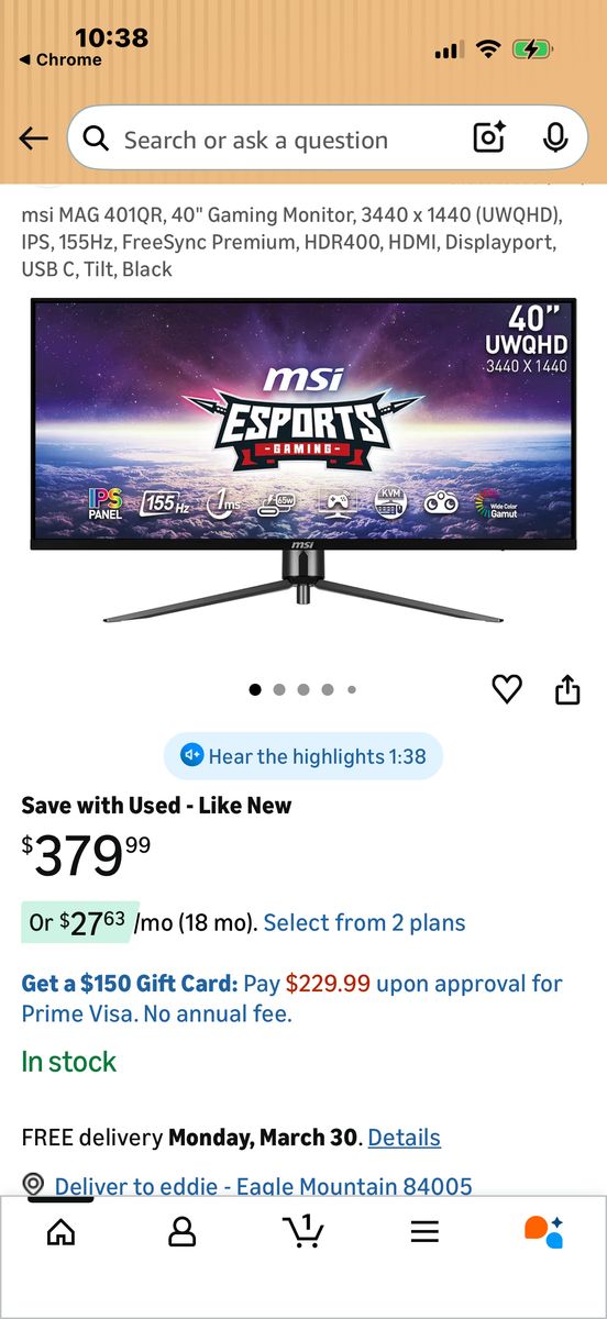 VenmoMSI MAG 40 Inch IPS ULTRAWIDE 155htrz And Acer 24 inch Ips 100htrz monitor both in great condition