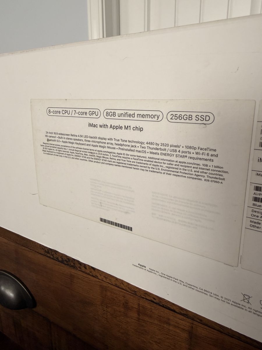 Specs: • 24-inch Retina Display (4.5K) • Apple M1 chip • 8GB RAM • 256GB SSD storage • macOS Sonoma (latest update)